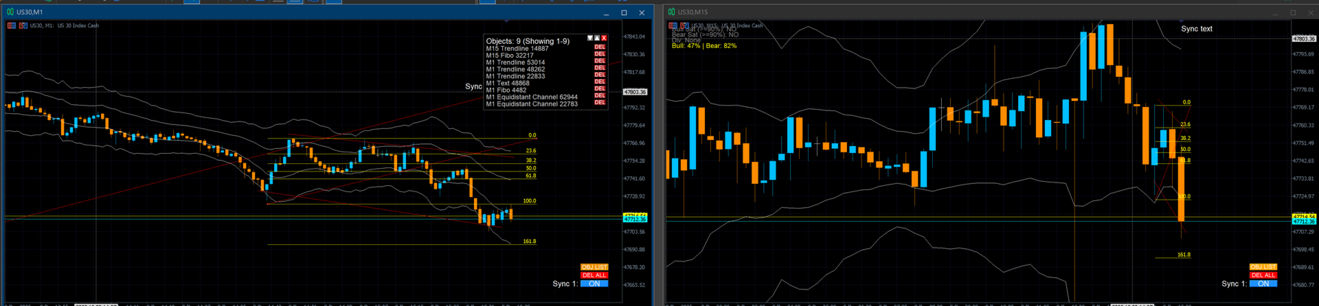 Symbol Sync: Change the asset on one chart, and all linked charts switch automatically (e.g., change EURUSD on the 5-min chart, and your 1-hour chart updates instantly).
