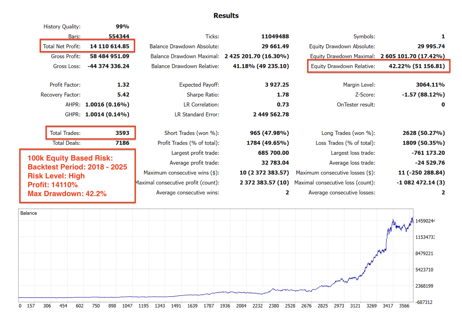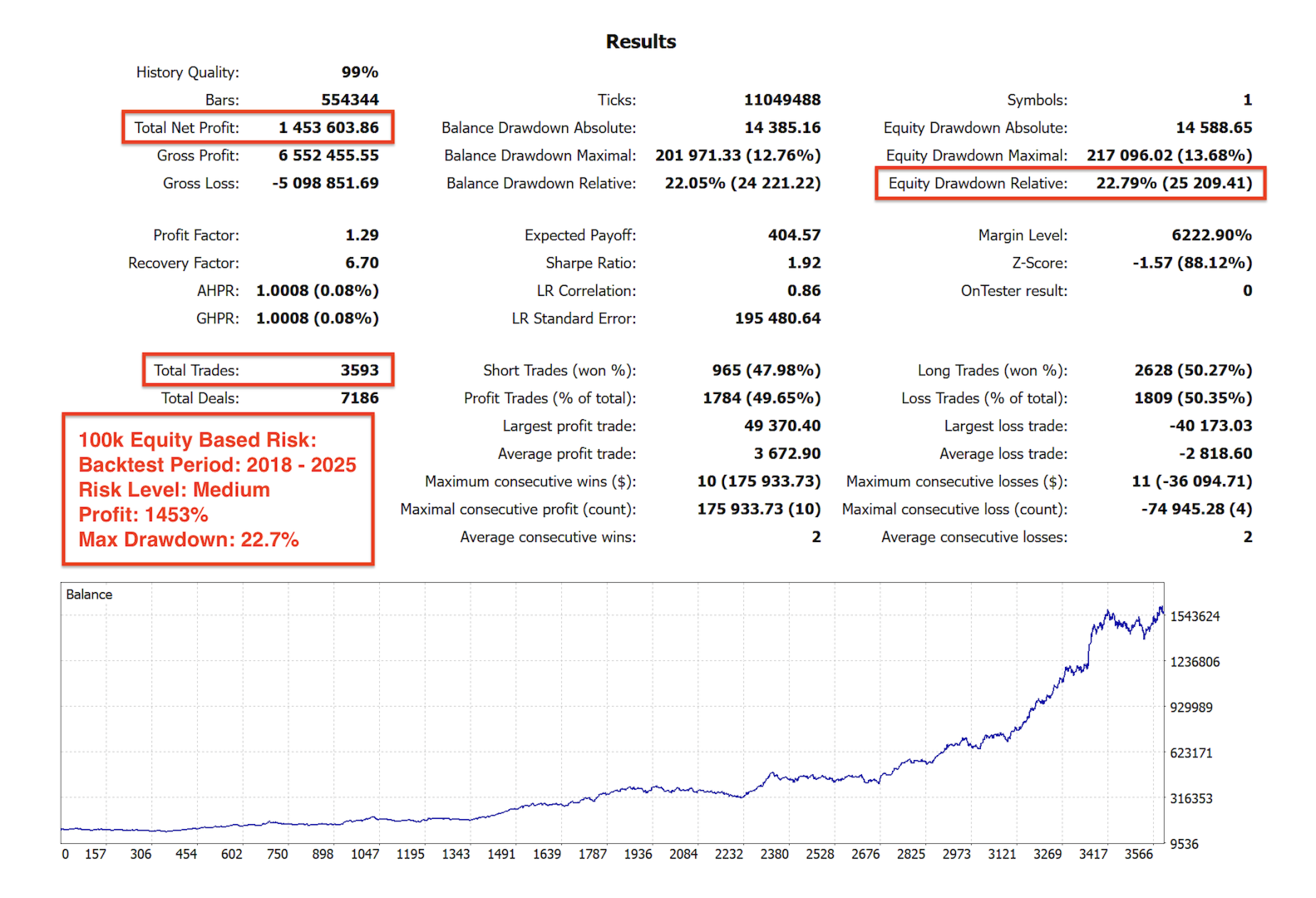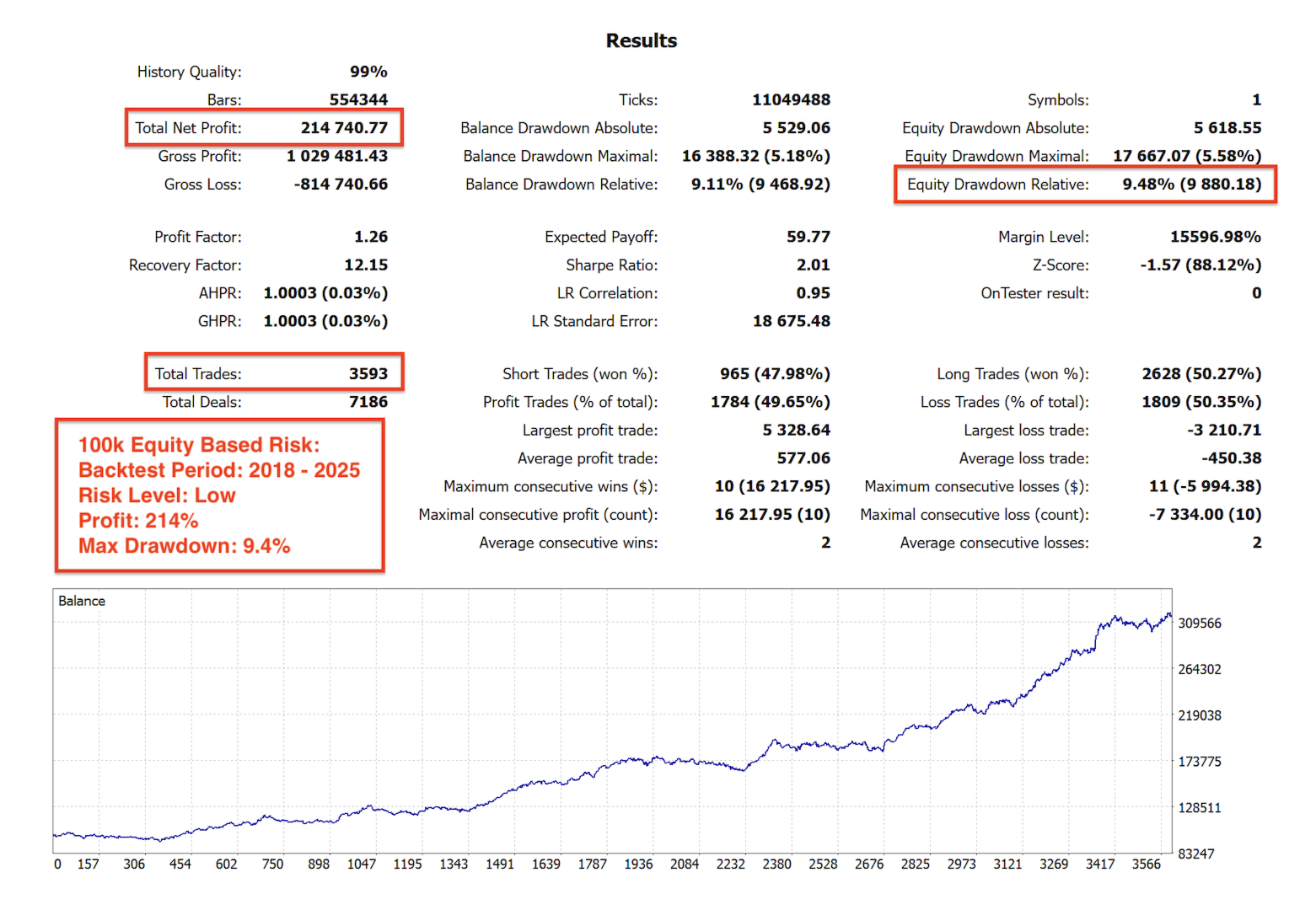 Bu EA, aşırı optimize edilmiş veya eğriye oturtulmuş mükemmel bir geri test yapmak için oluşturulmamıştır ve riskli martingale veya grid stratejileri kullanmaz.