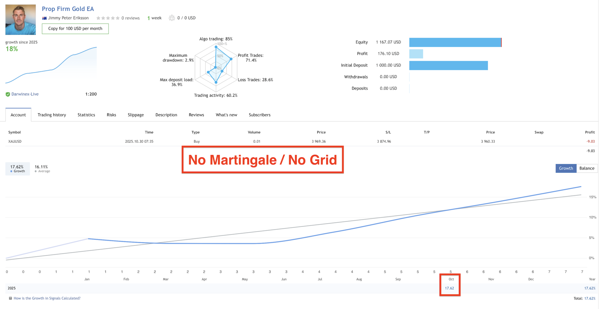 Asıl amaç gerçek zamanlı kârlılıktır. Bu EA'da kullanılan stratejiler, doğrulanmış sinyallerimde canlı olarak işlem yaptığım kanıtlanmış Altın stratejilerimin bir karışımıdır - 13 ayı aşkın kârlılık geçmişine sahip ve hepsi herhangi bir martingale veya grid sistemi olmadan elde edilmiştir. Bu, piyasada bulunması çok nadir bir şeydir.