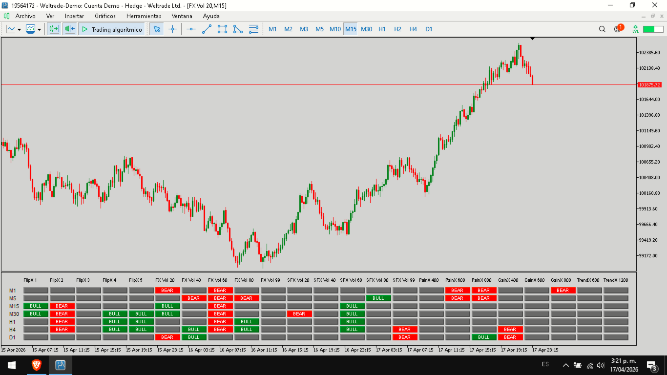 It is a high-speed scanner that monitors 23 symbols and 7 timeframes on a single screen. It identifies real trends and filters sideways markets using a triple EMA and ATR volatility algorithm.