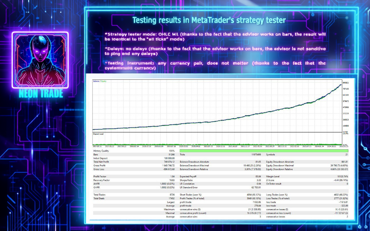 Her yatırımcının hedeflerinden ve ihtiyaçlarından bağımsız olarak taleplerini karşılayabilecek eşsiz bir işlem çözümü yaratmak istedim. Temel fikir, makine öğrenimini ileri düzey işlem teknikleriyle bir araya getirerek sinerjiden maksimum verimi elde etmeydi. Sistem, 1–2 ay içinde küçük bir yatırımı büyütmek kadar, yıllar boyu süren uzun vadeli yatırım stratejileri için de uygundur.