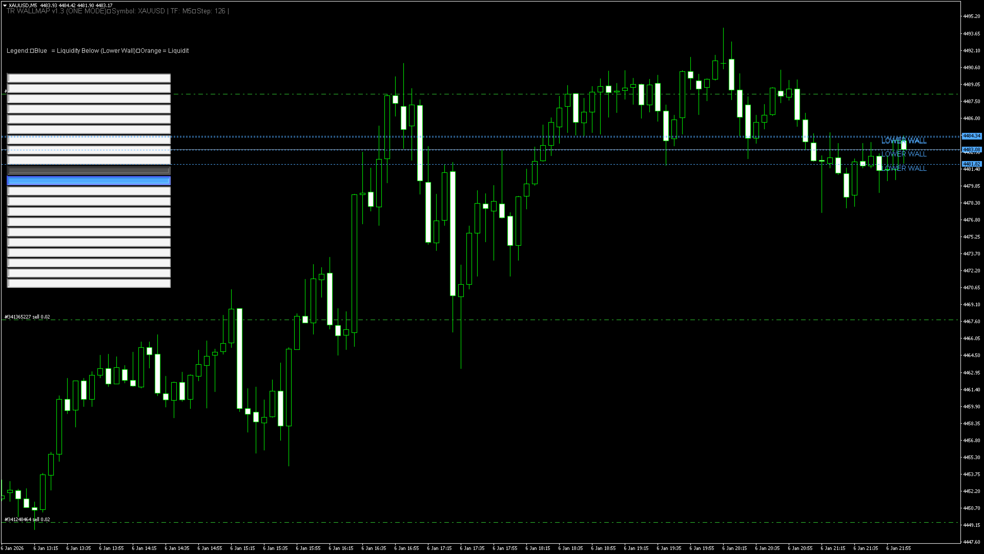 TR WALLMAP uses an advanced tick-based heat & reaction model to simulate order concentration behavior and visualize it in real time.