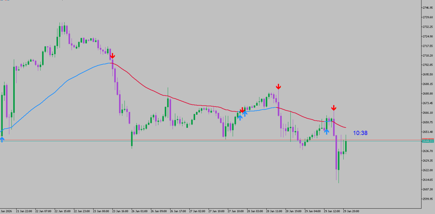 🔹 When the price crosses above the MA, the line instantly turns green, showing a buy arrow and triggering an alert.