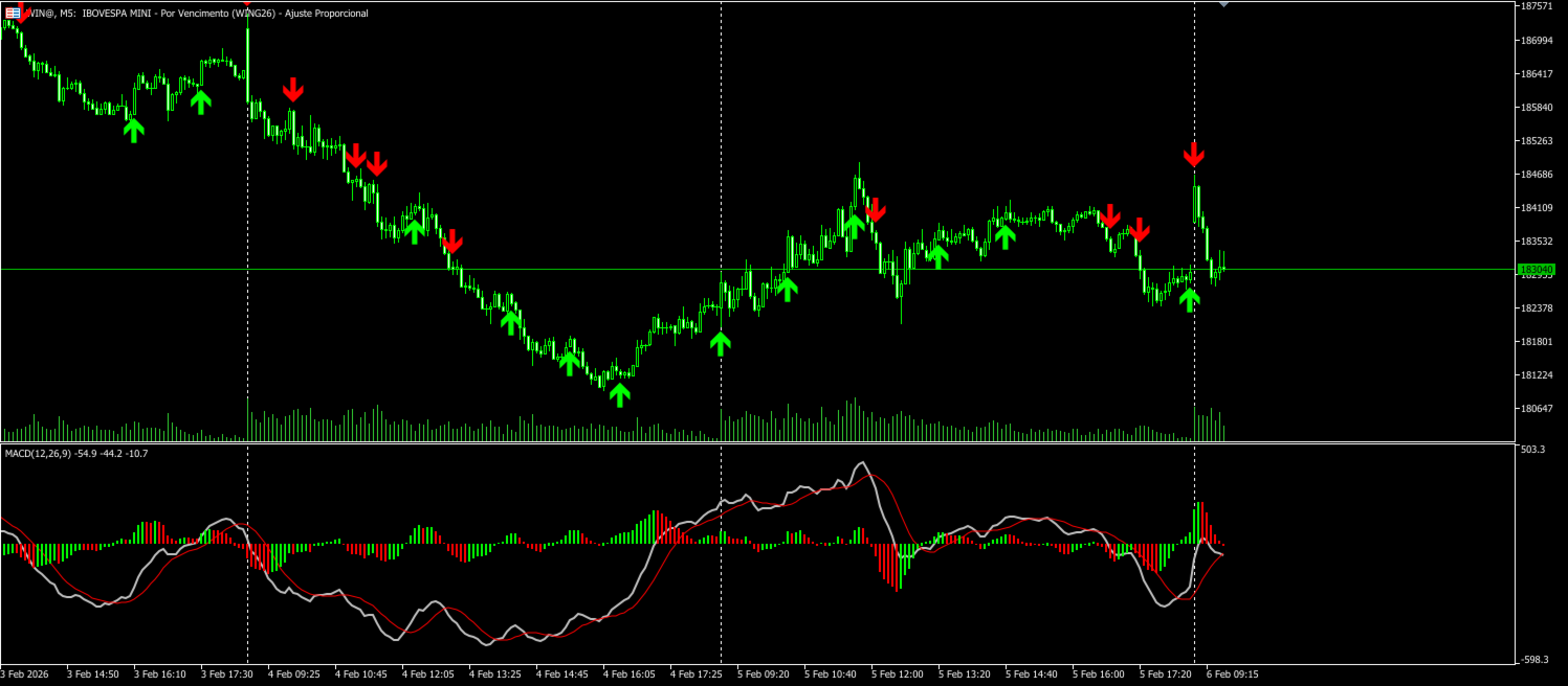 O MACD Alerta é uma ferramenta indispensável para traders que buscam a confiabilidade do oscilador MACD (Moving Average Convergence Divergence) aliada à praticidade de sinais em tempo real. Este indicador elimina a necessidade de monitorar o gráfico constantemente, plotando setas de compra e venda exatamente onde os cruzamentos e reversões ocorrem.