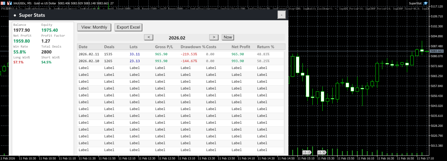 Super Stats is the ultimate utility for traders who need clear, instant insights into their trading performance. Designed with a clean, modern interface, this dashboard provides real-time statistics, monthly/daily breakdowns, and a powerful one-click Excel reporting engine.