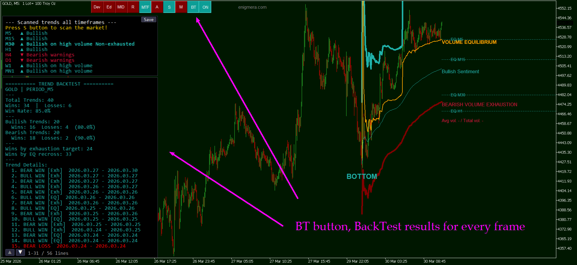 MERAVITH SCANNER, MetaTrader 5 için profesyonel bir finansal piyasa göstergesidir ve birden fazla analiz aracını tek bir entegre sistemde birleştirir. Tüm hesaplamaları, özel hacim ağırlıklı ortalama fiyat (VWAP) metodolojisini kullanarak otomatik olarak gerçekleştirir ve subjektif yorumları tamamen ortadan kaldırır.
