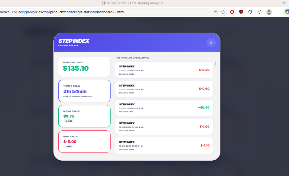 TradeDash PRO es un dashboard visual e intuitivo que convierte el historial de operaciones de MetaTrader 5 en gráficos y estadísticas fáciles de entender. Olvídate de tablas aburridas y archivos difíciles de analizar. Con TradeDash PRO, verás exactamente dónde ganas y dónde pierdes dinero.