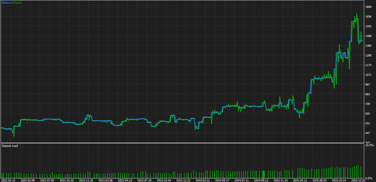 Sonuç olarak rapor, sistemin küçük ve orta ölçekli kârları yüksek frekansla güvence altına almayı tercih eden, kayıp serilerini çok kısa tutan ve sermayeyi derin düşüşlerden koruyan yüksek hassasiyetli bir algoritma olduğunu yansıtmaktadır; bu durum bakiyede sürekli bir büyüme ve oldukça olumlu bir genel risk-getiri oranı ile sonuçlanmaktadır.