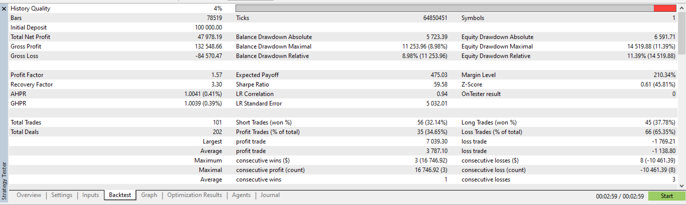 • Profit Factor: 1.57