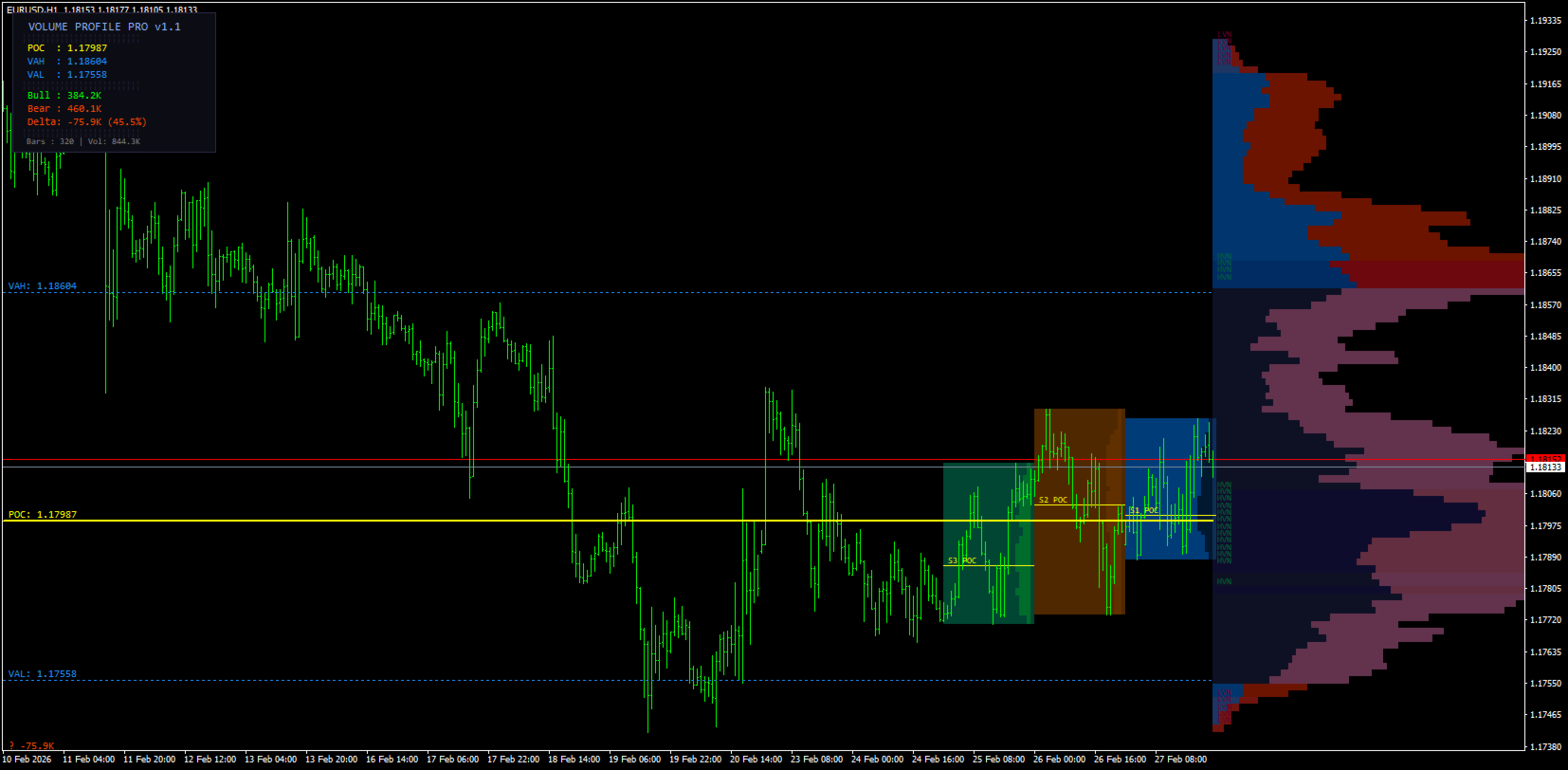 Volume Profile Master Pro brings institutional-grade volume analysis to your MT4 charts. Unlike standard volume indicators that show when volume occurred, this tool shows where — at each price level — giving you a precise map of market activity to identify high-probability trade setups.