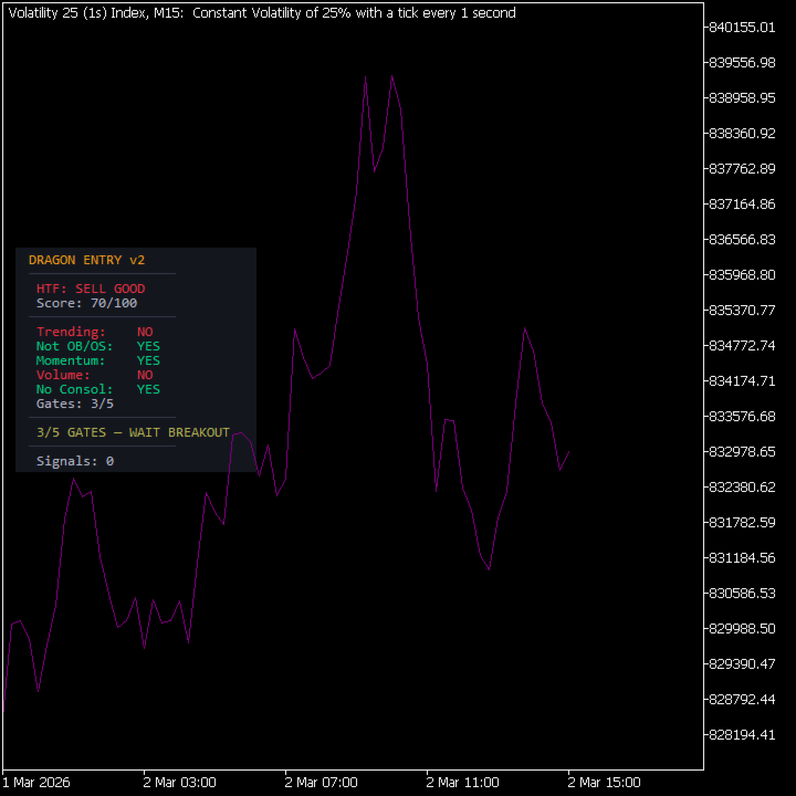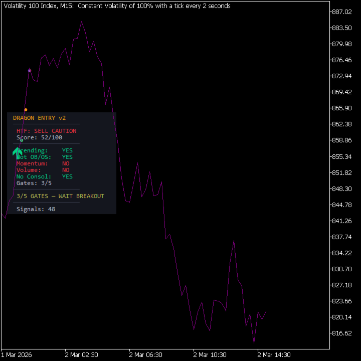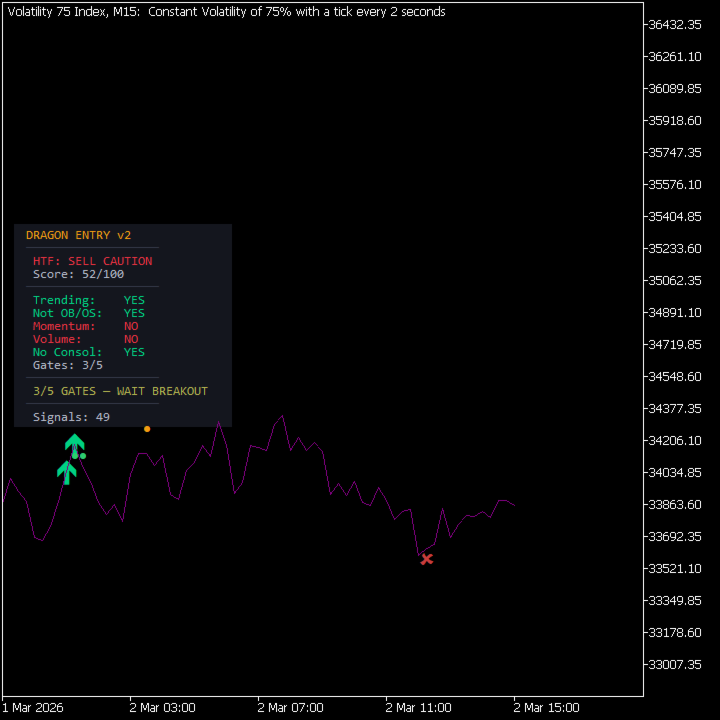 BEST USED WITH: Dragon Trend Analyzer (sold separately) on H1 for trend confirmation. Apply Dragon Trend on H1 to get the score, then use Dragon Entry on M15 for gated entries.