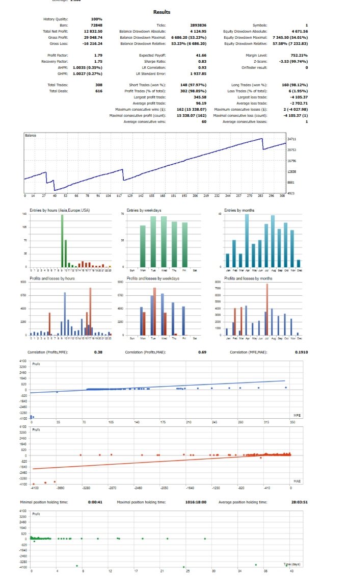 Tested clean across: EURUSD H1, M30, M1 — 200+ trades XAUUSD D1 — 275 trades GBPUSD M30 — 213 trades
