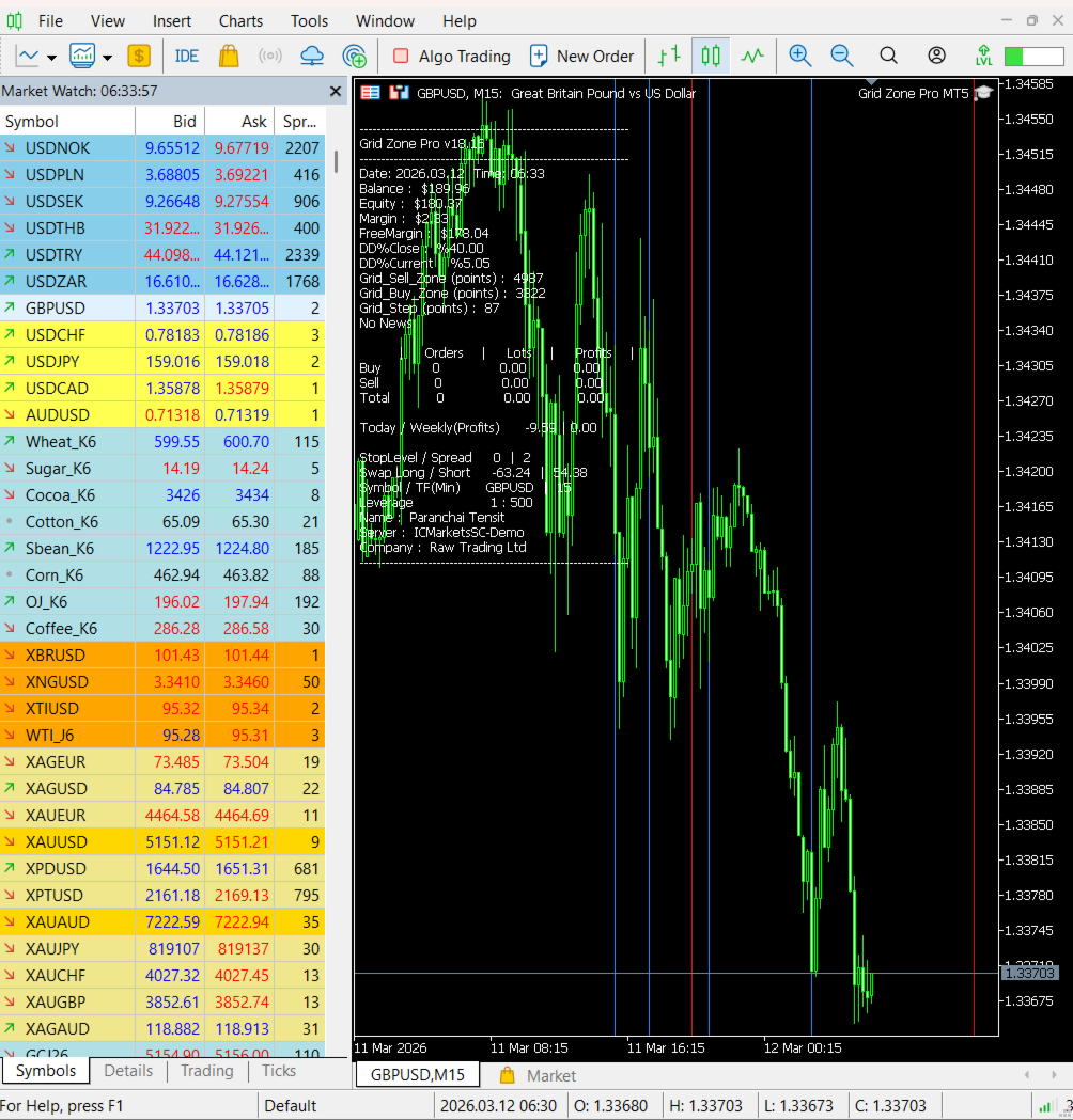 Grid Zone Pro MT5 is a fully automated expert advisor. The system uses filtering measurements from trend signals to create buy zones and sell zones. Trading signals are processed by allocating them into the design zone. The system will automatically calculate the grid distance or the user can set it manually. This EA has passed 8 years back test of real tick data (2018-2026).