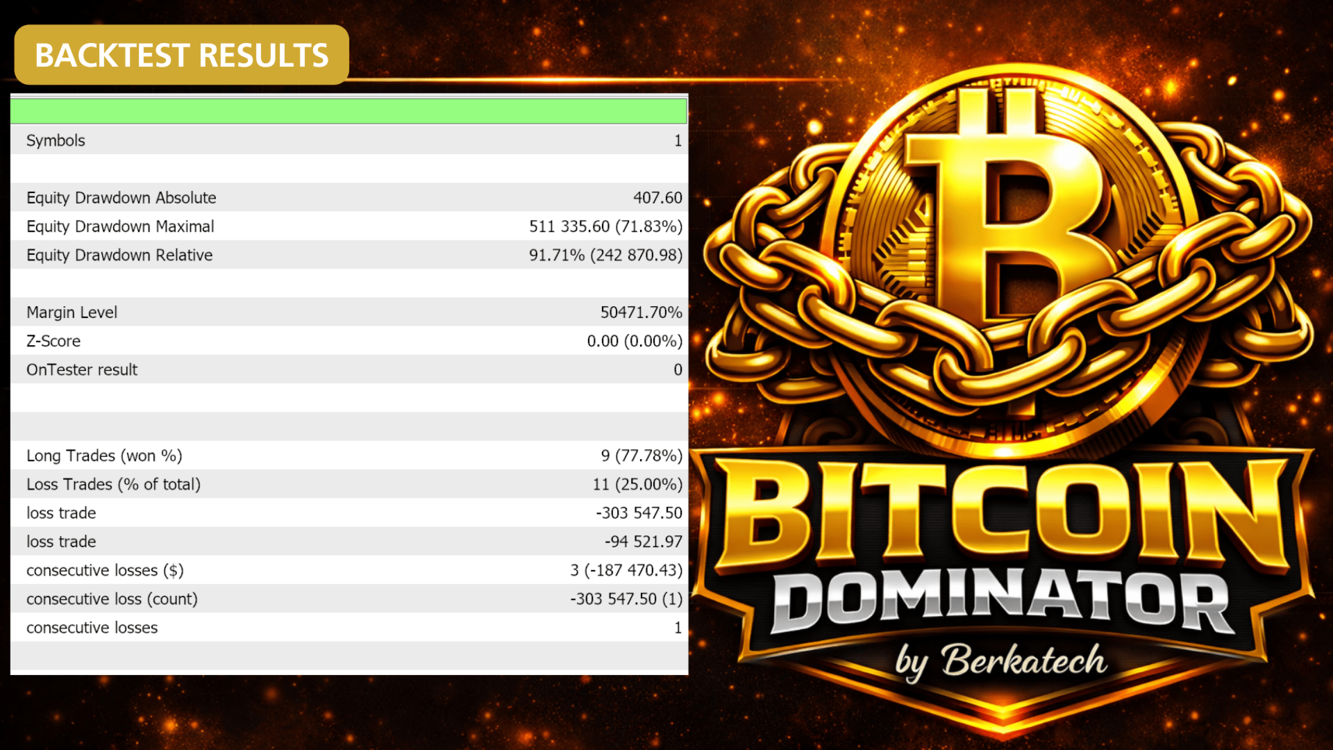 Bitcoin Dominator EA MT5 is an advanced automated trading system tailored for BTCUSD traders seeking professional-grade performance with built-in safety features. Designed for MetaTrader 5, this EA focuses on execution quality, risk management, and ease of monitoring, while keeping the core strategy fully proprietary.
