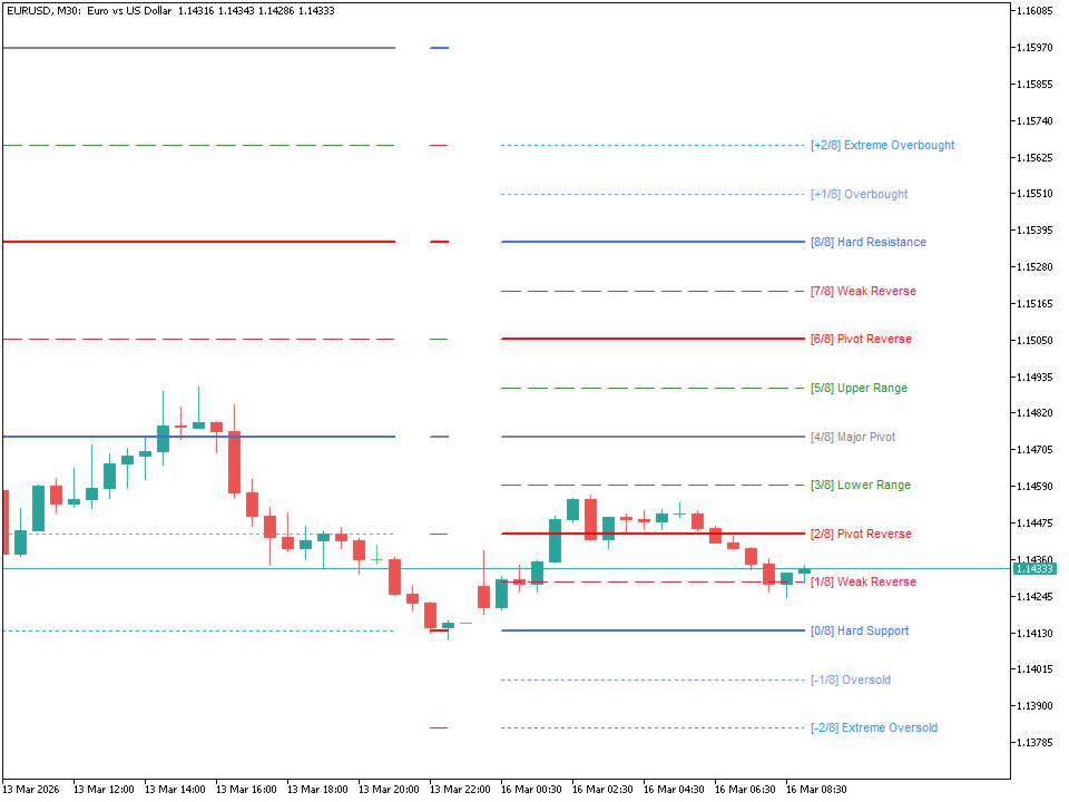 - [6/8] & [2/8] Pivot Reverse: Strong reversal points where price frequently changes direction.