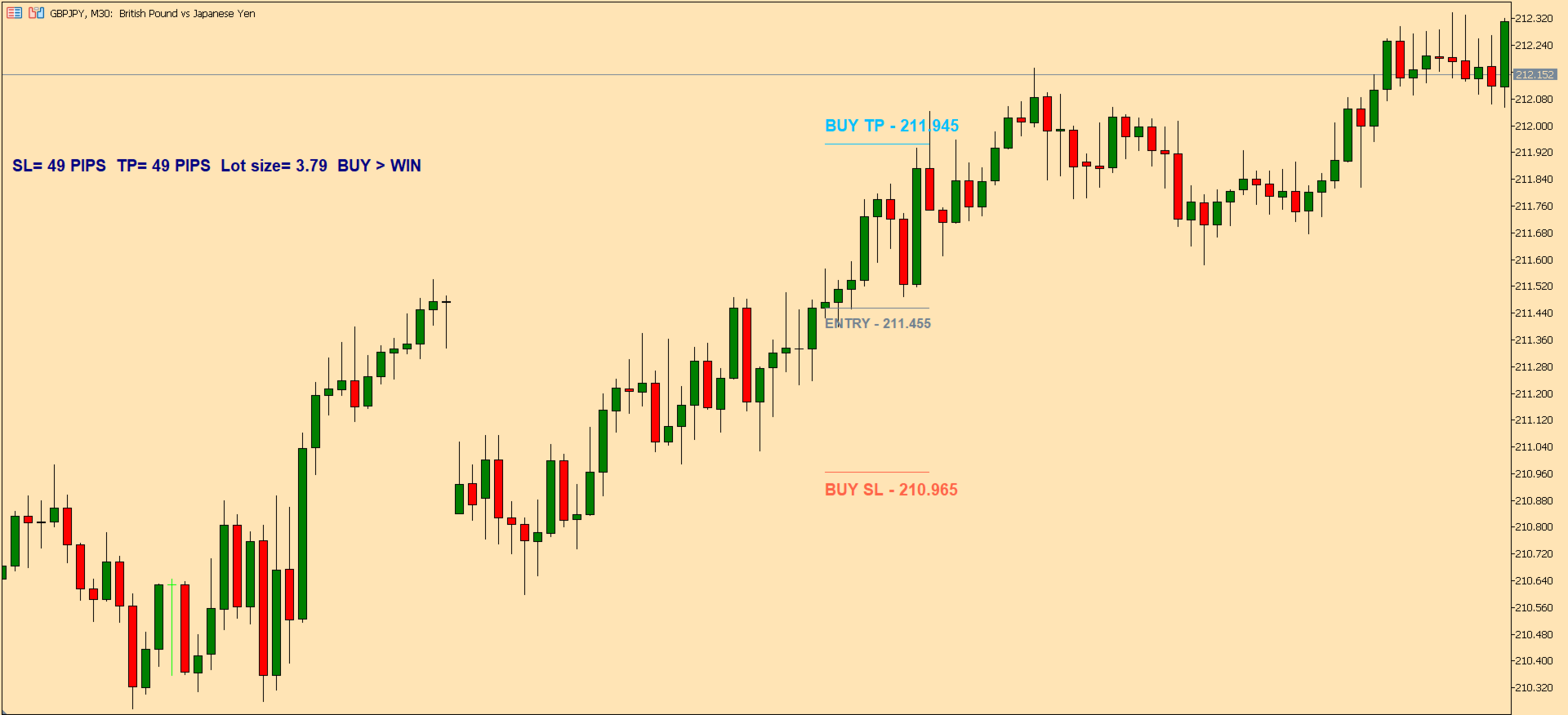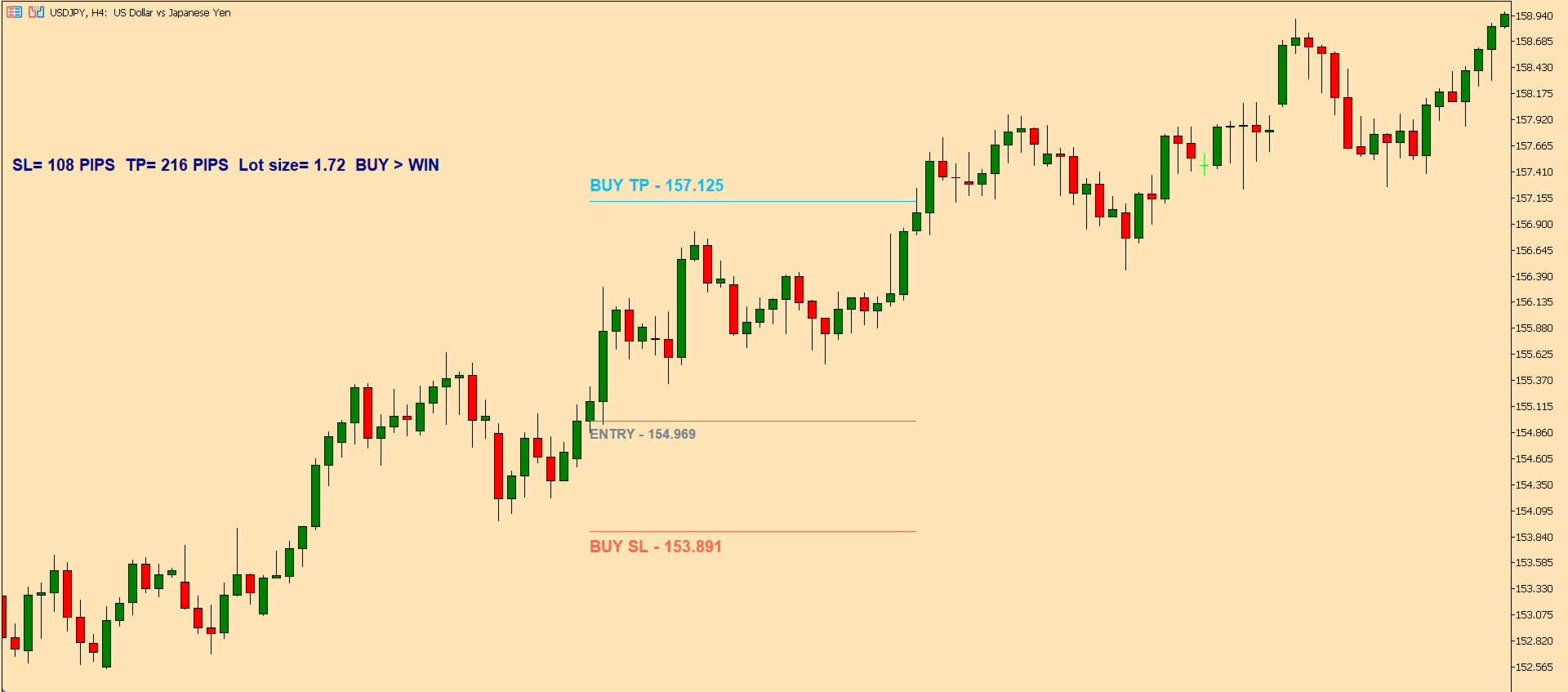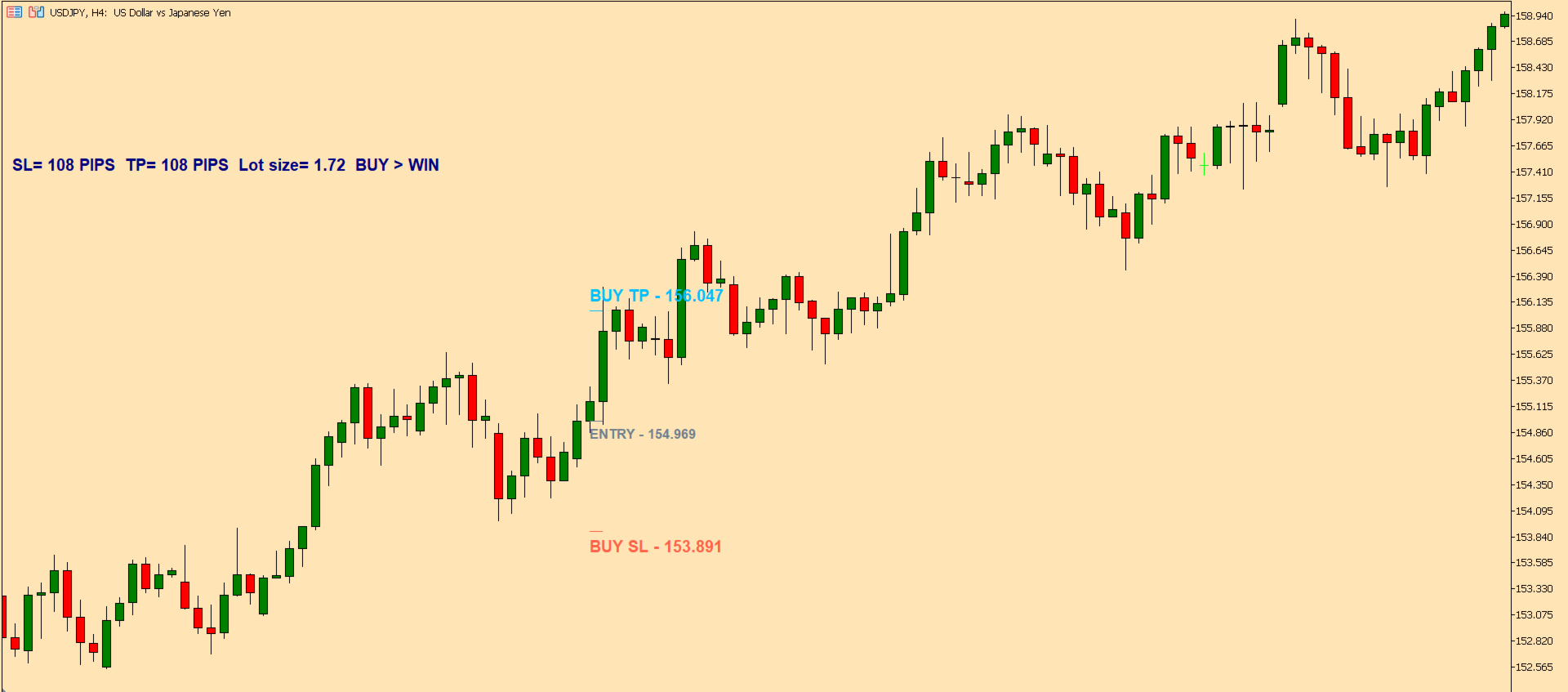 Clear trade information displayed directly on the chart