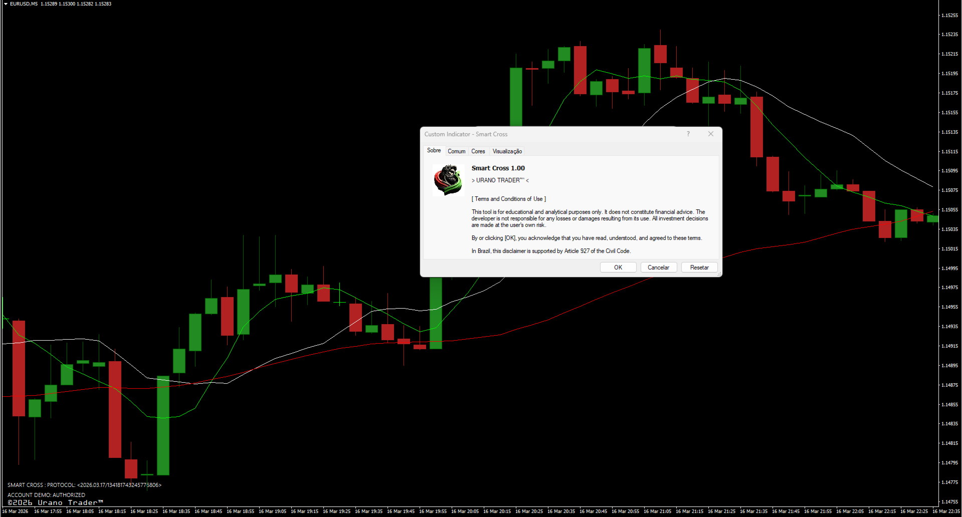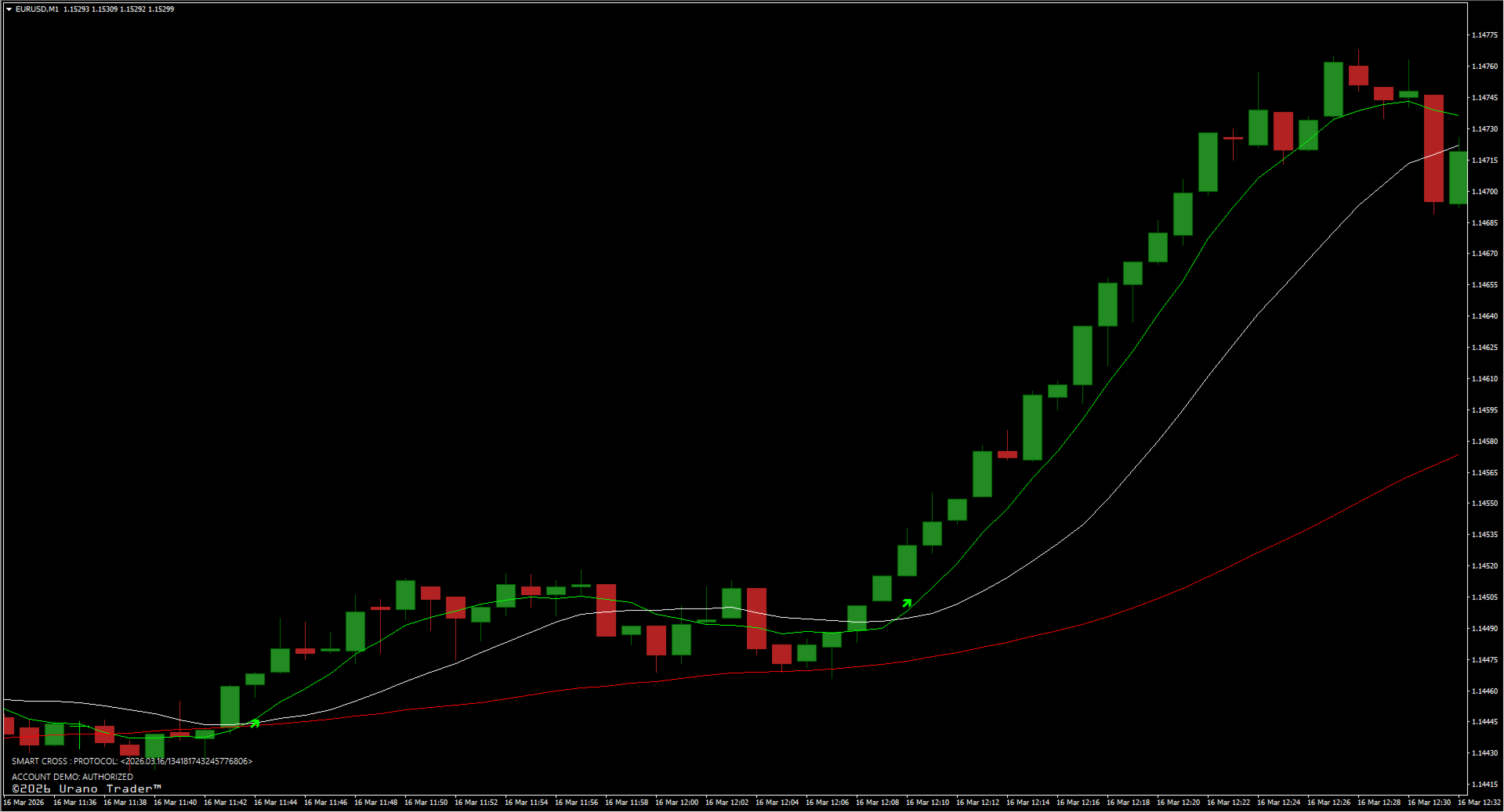 Hareketli ortalama kesişimleri ve RSI ile güç teyidini birleştiren stratejisi sayesinde UranoTrader Smart Cross, net, objektif ve filtrelenmiş sinyaller sunar. Tutarlılık, çeviklik ve gereksiz karmaşıklıktan arındırılmış temiz bir piyasa görünümü arayan yatırımcılar için idealdir.