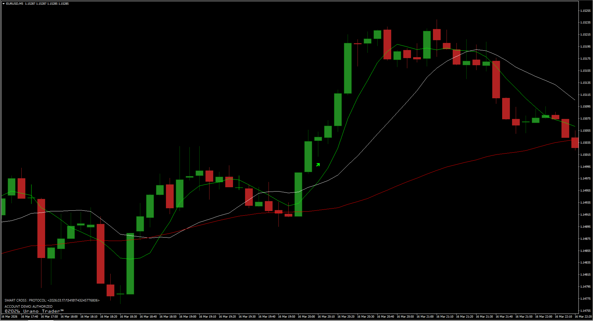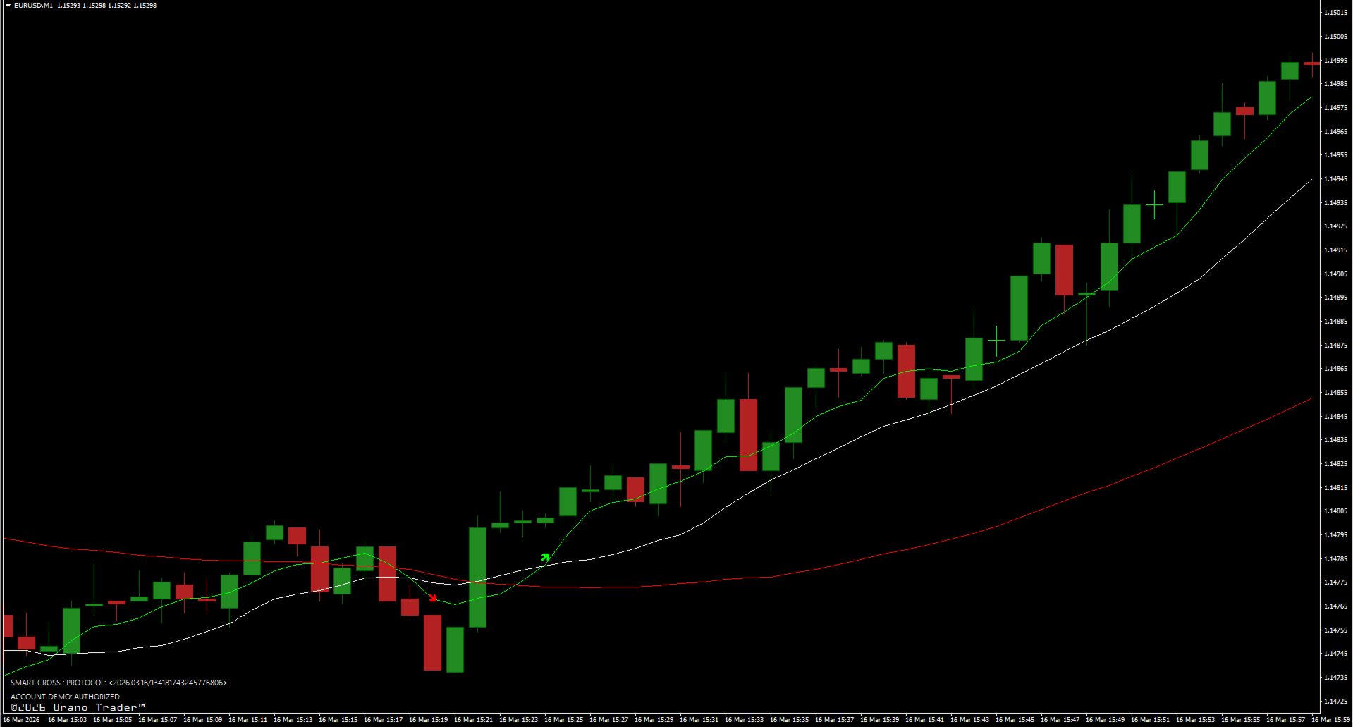 UranoTrader Smart Cross, trend ve momentum bazlı giriş noktalarını hassas bir şekilde belirlemek isteyen yatırımcılar için geliştirilmiş teknik bir göstergedir. MetaTrader 4 için tasarlanan bu gösterge, hareketli ortalama kesişimlerini RSI teyidi ile birleştirerek net ALIM (BUY) ve SATIM (SELL) sinyalleri üretir, piyasa gürültüsünü azaltır ve düşük olasılıklı işlemlerden kaçınmanızı sağlar.