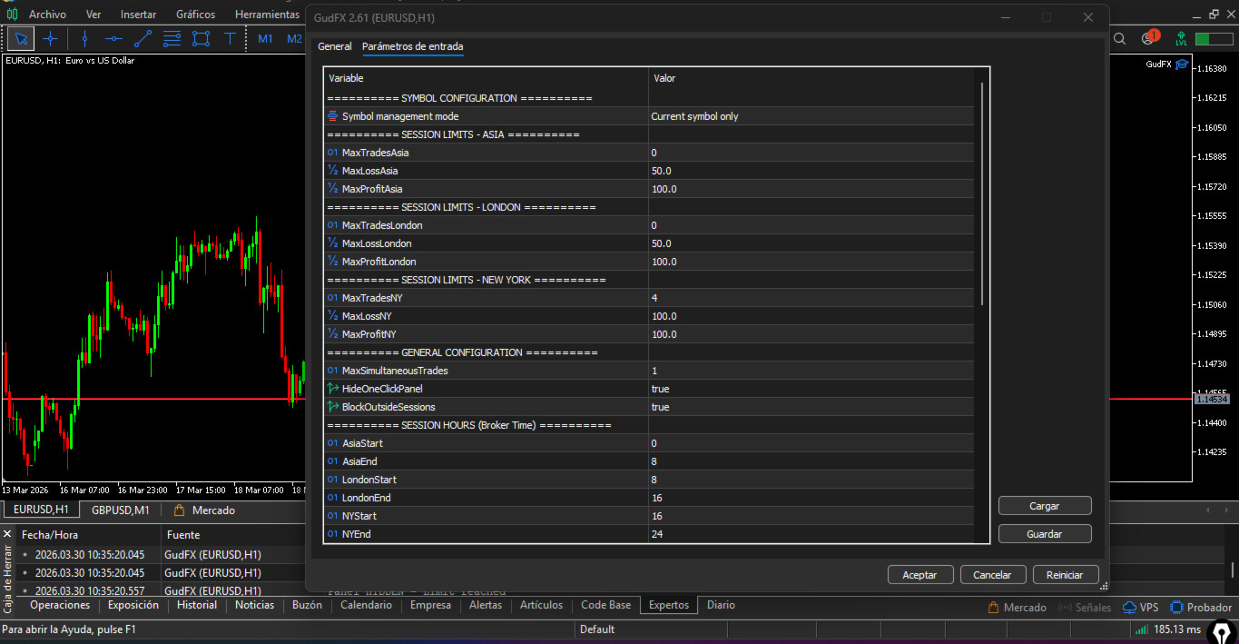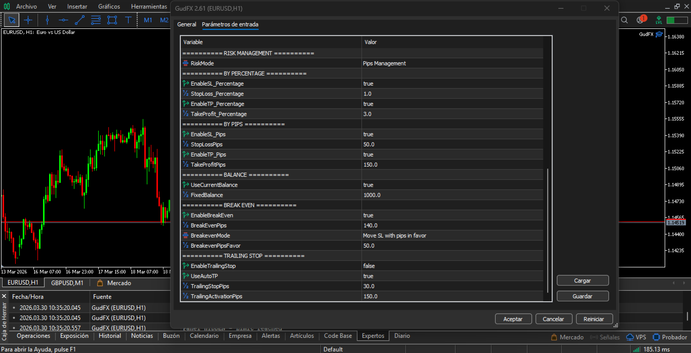 👉 Seans kurallarınızı belirleyin, kilitli kar ile başabaş modunuzu seçin, GudFX'i etkinleştirin ve manuel yönetimi unutun. Bağlantınız olmasa bile, riskiniz mükemmel bir şekilde yönetilir.