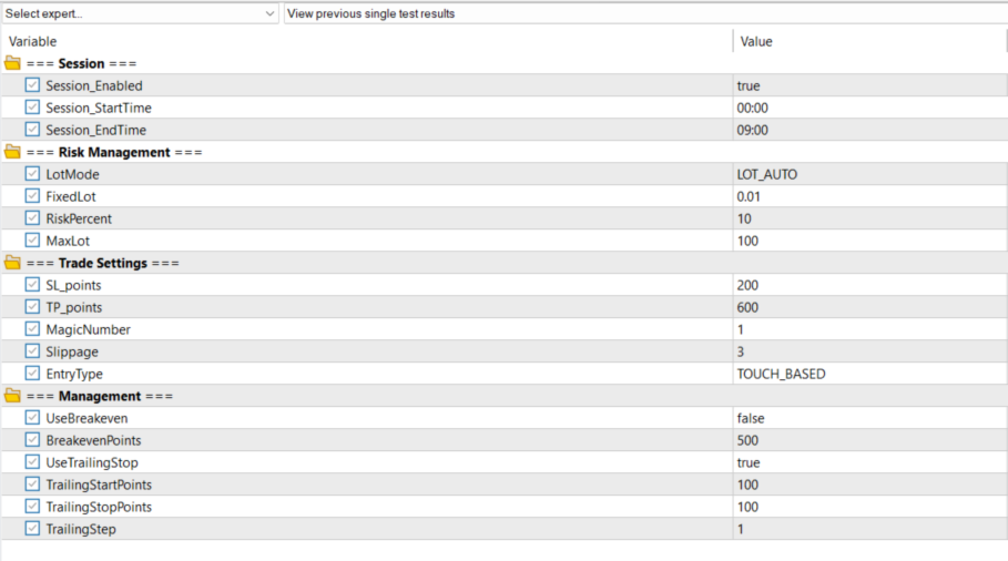 Supports both fixed and percentage-based lot sizing to adapt across different account sizes. - Built-in Trade Protection