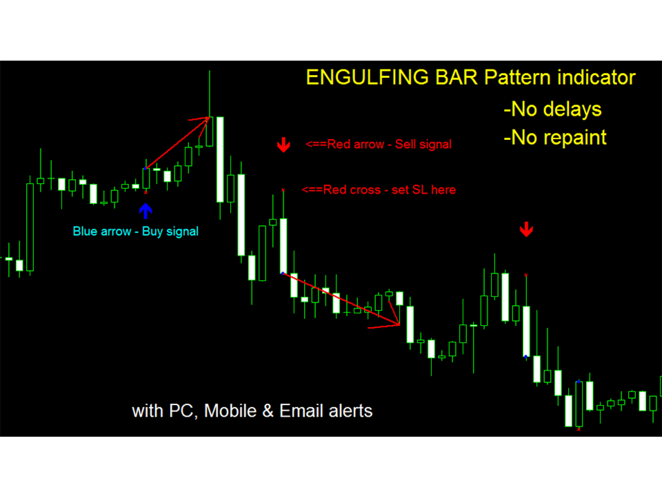 - Gösterge, grafikteki Engulfing Bar desenlerini algılar: