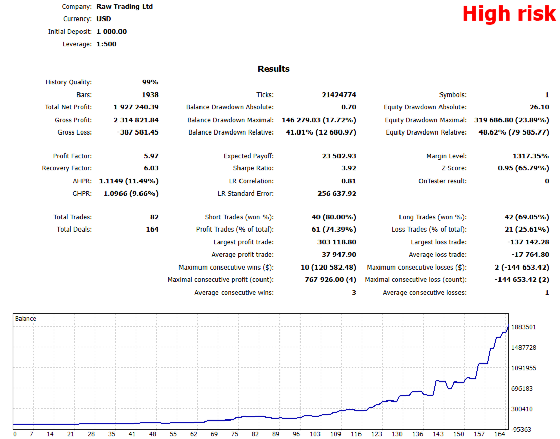 - Maintenance: It is recommended to re-optimize the EA using the sliding window every 4 months, or immediately if the trading hit-rate begins to decrease.