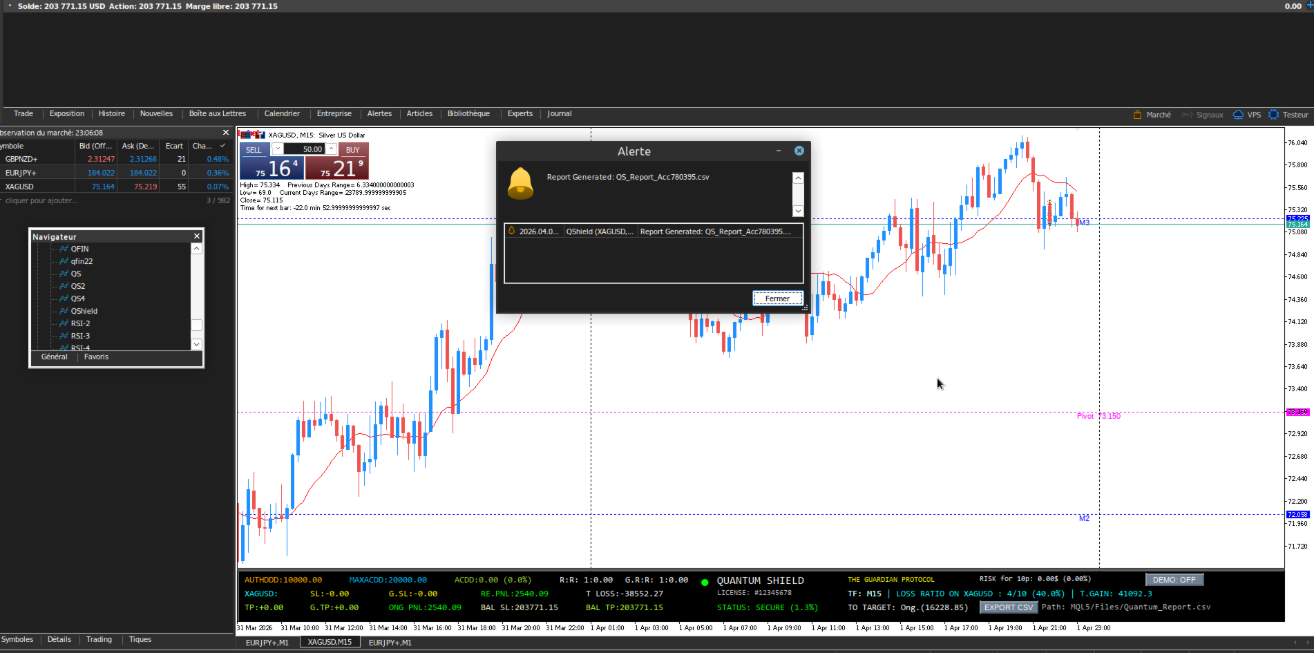 - Data Export: Click [EXPORT CSV] to save your session stats into MQL5/Files/ .