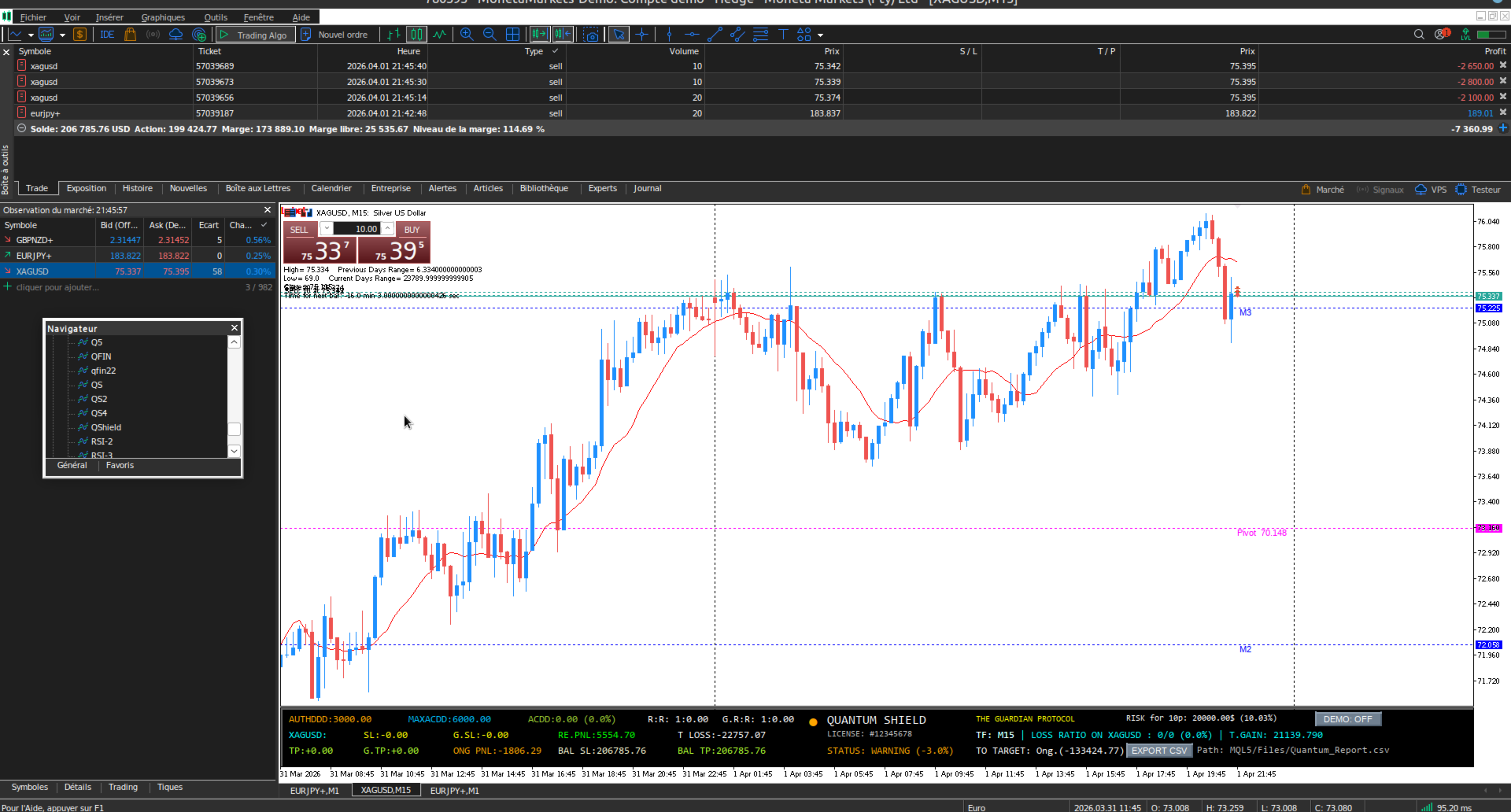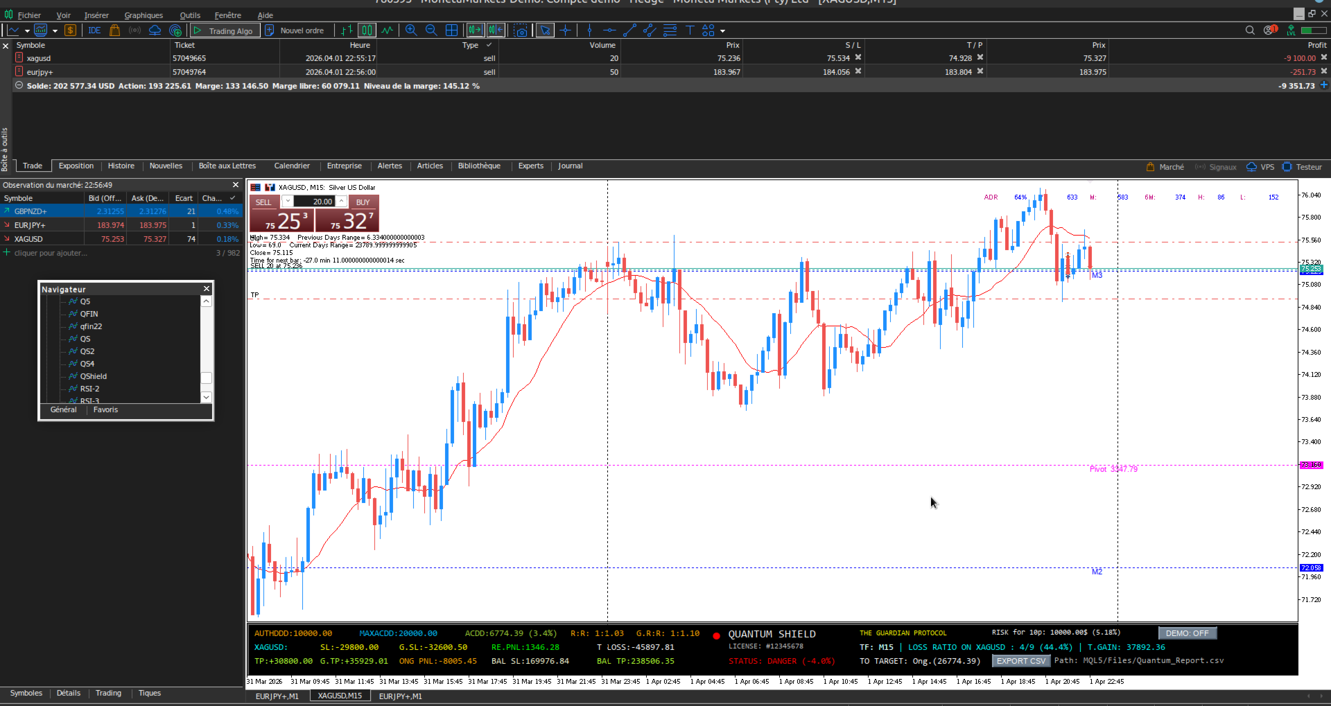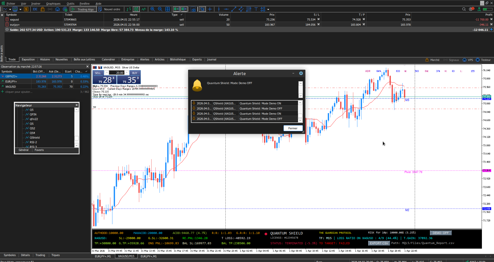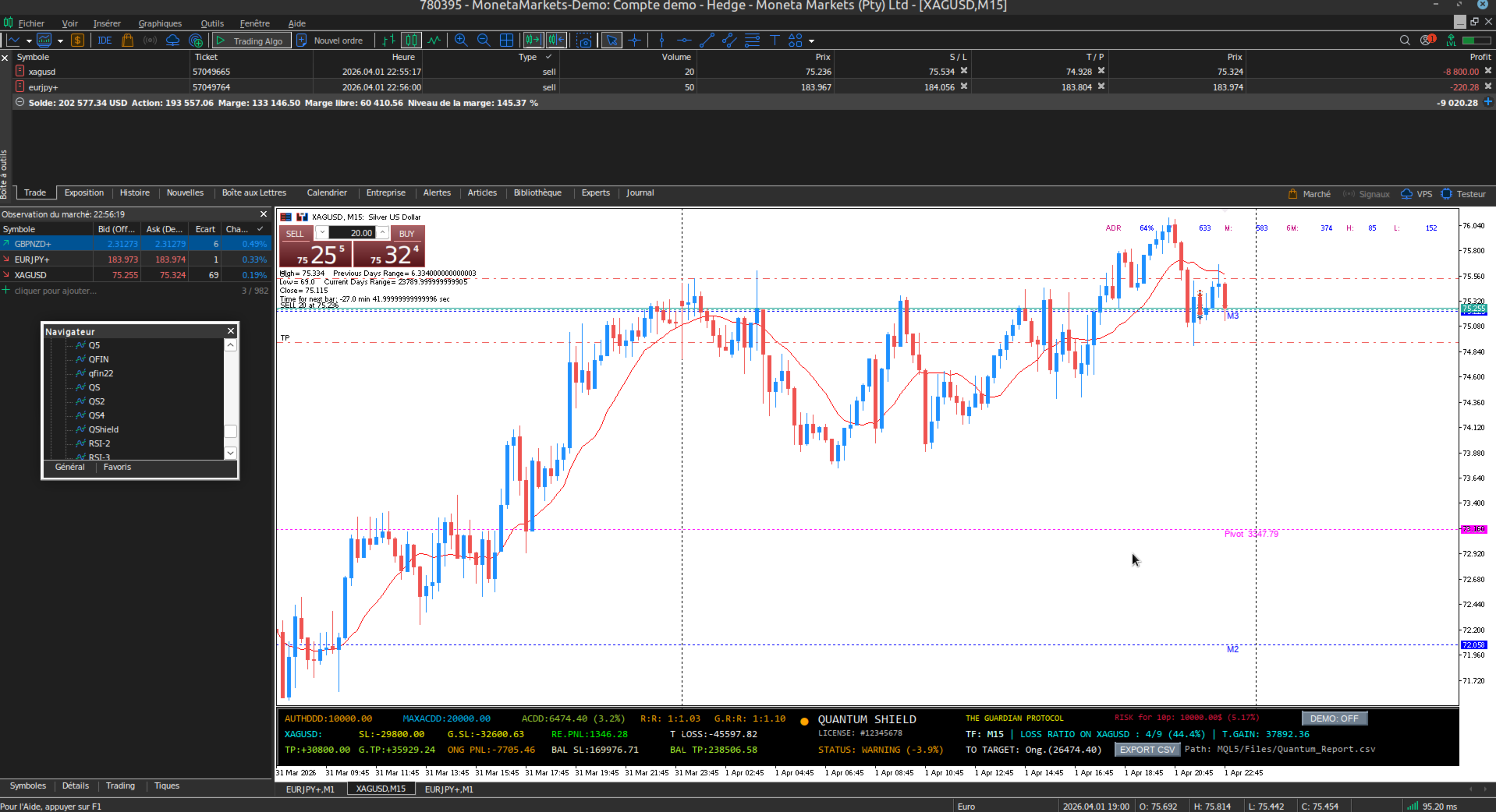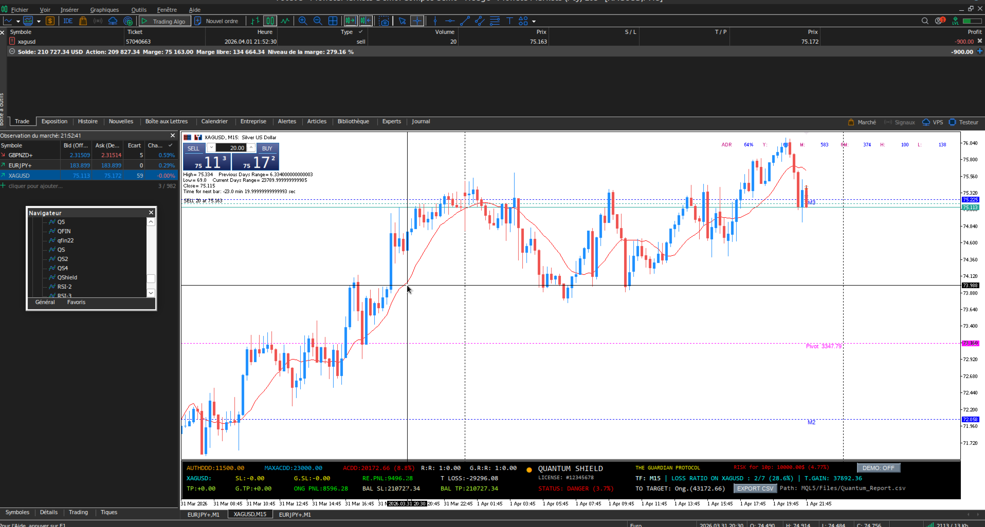 Quantum Shield is the ultimate monitoring tool built specifically for Prop Firm traders (FTMO, MyFundedFX, etc.). Functioning as a high-tech control tower, it secures your trading by calculating real-time daily and maximum loss limits to prevent any account violations.