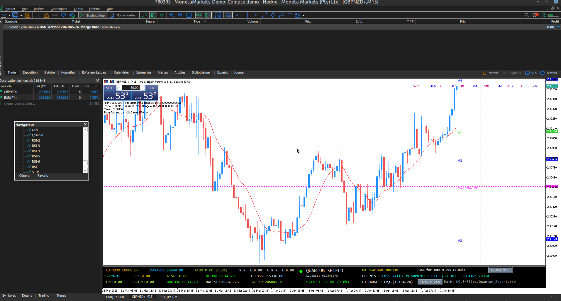 - DEMO Mode: Click the [DEMO] button to simulate a fresh session with a broker cemo account without affecting your real account statistics.