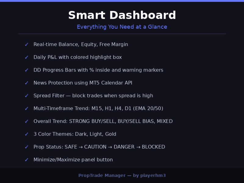 ✦ Set your Prop Firm rules ONCE — the panel enforces them automatically
