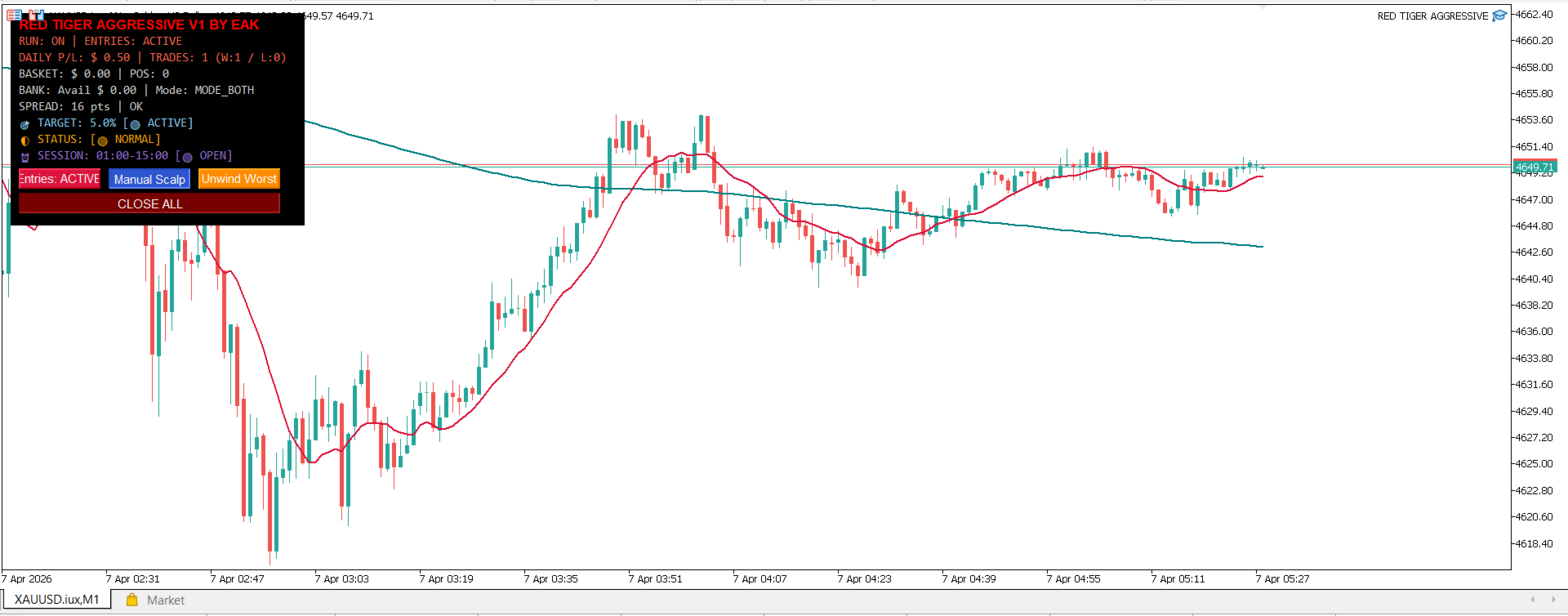Unlike traditional EAs that wait for a "rejection" or confirmation candle, RED TIGER is designed for pure, aggressive action. It filters the overarching trend on the M5 timeframe, identifies the M1 breakout, and the exact moment the price pulls back into the breakout zone—IT STRIKES. No hesitation. No waiting for the candle to close. Just instant, aggressive entries to secure the absolute best price level.