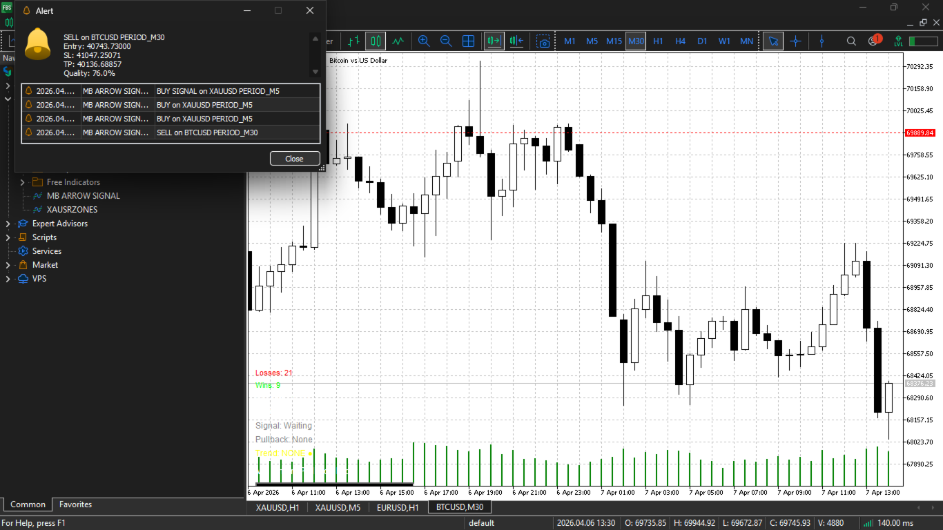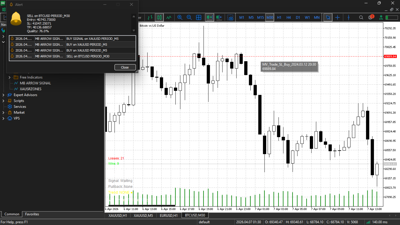 MV Phantom Pullback Pro is a complete pullback trading system with professional-grade risk management, quality scoring, and performance analytics. The non-repainting guarantee and built-in filters help traders focus on high-probability setups while avoiding low-quality signals