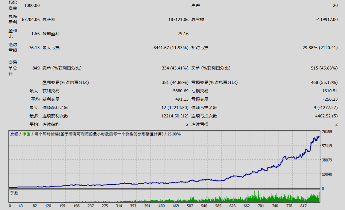 横盘时间一般盈利不明显,会有连续亏损(这就是连续最大回撤,需要先测试好),趋势行情比较延续且暴力。