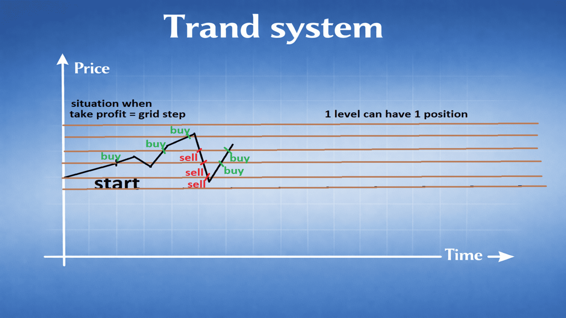 - Additional grid settings — each of the two grids has its own parameter set (step, multiplier, limits), allowing flexible interaction between them.