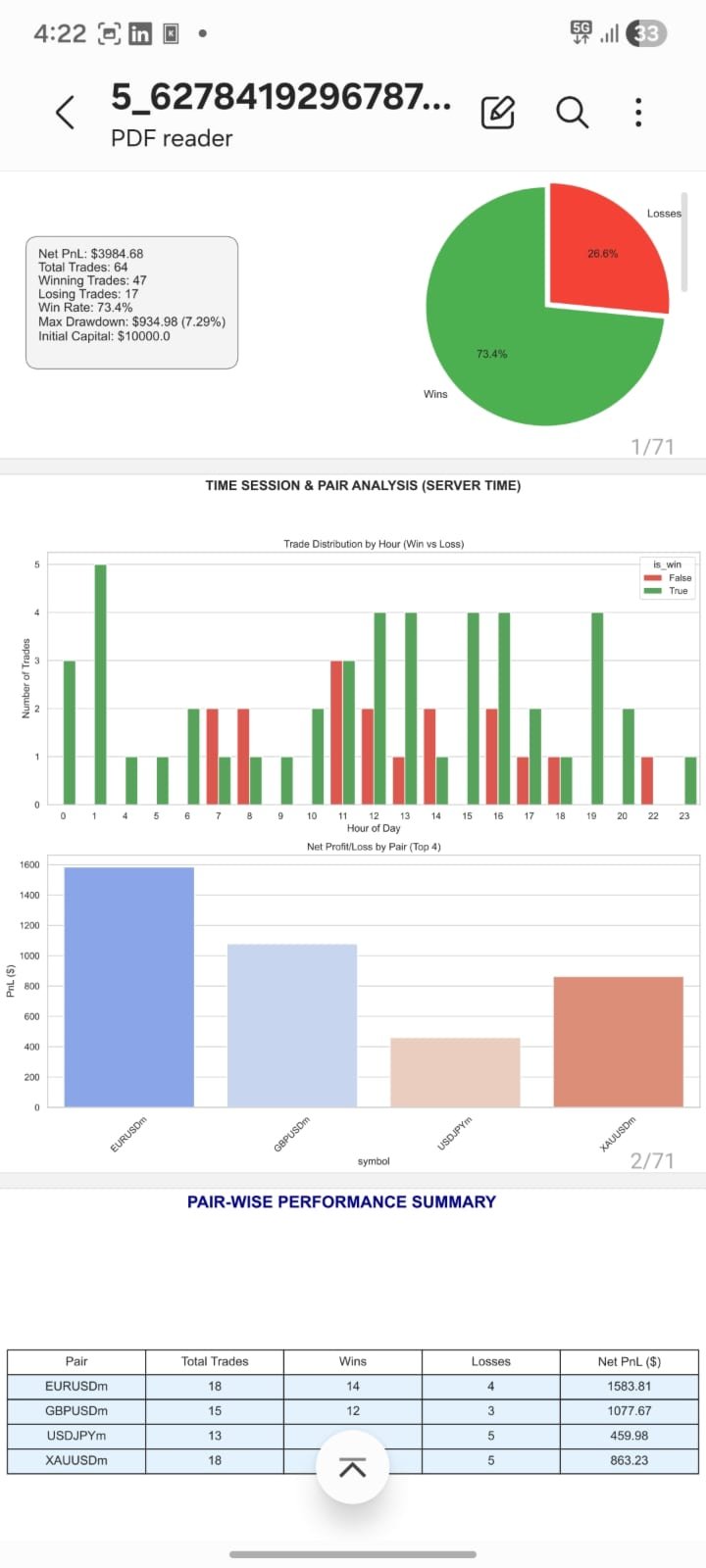 Win Rate: 73.4% (Highly precise trade execution)
