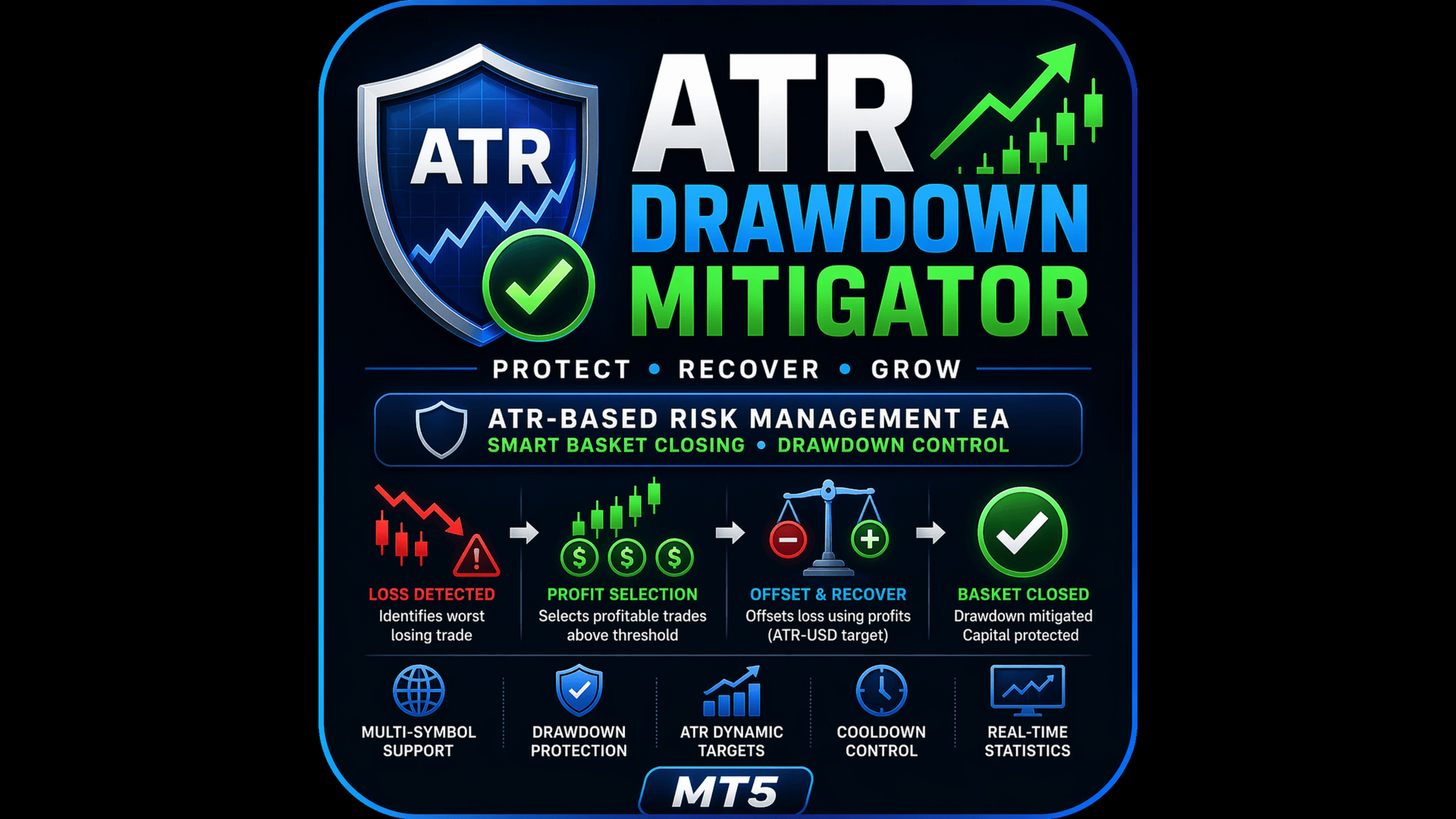 💡 The recovery target is calculated using ATR (volatility) + USD minimum floor, making it adaptive to market conditions.