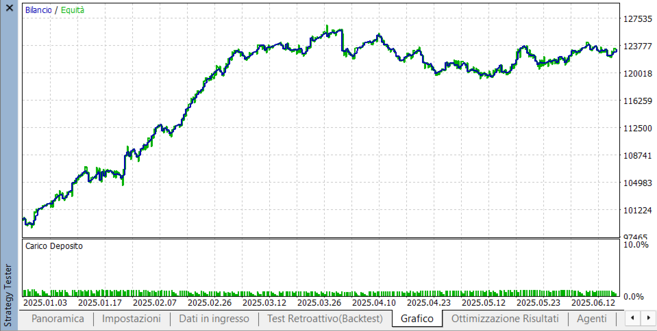 OTAY QUANTUM TRADER EA v5.6 - Descrizione Completa Panoramica Generale L'OTAY QUANTUM TRADER EA è un Expert Advisor professionale multi-asset progettato per il trading automatizzato su MetaTrader 5. Sviluppato da Otay Ezzeddine, questo EA combina analisi tecnica avanzata, gestione del rischio sofisticata e logica di trading basata sui livelli di Fibonacci. Asset Supportati L'EA supporta automaticamente molteplici tipologie di strumenti: Metalli preziosi: XAUUSD (Oro) e XAGUSD (Argento) con impostazioni specifiche Criptovalute: BTC, ETH e altre principali criptovalute Indici: US30, NAS100, SPX500, DAX40, FTSE100 Materie prime: WTI/Oil, Brent, Crude Oil Forex: Tutte le coppie, con moltiplicatore specifico per le coppie JPY Strategia di Trading La strategia principale si basa sui livelli di ritracciamento ed estensione di Fibonacci: Livelli Fibonacci Configurabili Primo entry level: 49% di ritracciamento (personalizzabile per ogni asset) Secondo entry level: 73.5% di ritracciamento Terzo entry level: 70% per Oro e Argento Stop Loss: 88.5% di ritracciamento Take Profit multipli: 76%, 97%, 122.6%, 146% di estensione Rilevamento Swing Points L'EA identifica automaticamente i punti di swing (massimi e minimi) utilizzando: Swing Bars adattivi: si adattano automaticamente al timeframe corrente Distanza minima configurabile tra swing points Filtro direzionale per confermare la direzione del trend Analisi Multi-Timeframe Sistema avanzato di conferma del trend che analizza: Timeframe primario (default M10) per trend principale Timeframe secondario (default M30) per trend secondario Trend locale basato su price action e medie mobili Allineamento minimo richiesto: 3 timeframe allineati Filtri e Sicurezze Time Filter Orario di trading configurabile (es. 02:20 - 23:45) Periodo di blocco BTC specifico (es. 15:20 - 16:20) Cooldown per Oro e Argento tra trade consecutivi News Filter Filtro notizie ad alto impatto da ForexFactory Minuti di blocco pre/post news configurabili Filtro per valuta specifica o tutte le news Gestione del Rischio Avanzata Drawdown giornaliero massimo: 4% dell'equity Stop loss globale: 8% del drawdown totale Perdita massima per asset: 1.3% del balance (include posizioni EA + manuali) Stop loss su perdita flottante totale: 4% su TUTTI gli asset combinati Profit target giornaliero: 1.5% (chiude tutte le posizioni) Money Management Lot size differenziata per asset (moltiplicatori specifici) Risk percentage configurabile (0.1-2% per trade) Massimo 3 posizioni per asset (entry progressive) Massimo 24 posizioni totali aperte contemporaneamente Gestione Posizioni Take Profit Parziali TP1: Chiusura 30% posizione TP2: Chiusura 50% posizione TP3: Chiusura 75% posizione TP4: Chiusura completa Trailing Stop Trailing stop adattivo per tipo di asset Break-even automatico dopo raggiungimento soglia Gestione trailing differenziata per crypto, indici, metalli Entry Progressive Primo entry: lotto base (es. 0.5) Secondo entry: lotto base (es. 0.5) Terzo entry (solo Oro/Argento): lotto ridotto (es. 0.2) Indicatori Tecnici RSI per conferma entry (range 25-75) ATR per misurare volatilità Medie mobili (20, 50, 200) su timeframe multipli Price action con barre di conferma Panel di Controllo Il pannello statistiche mostra in tempo reale: Performance trading: total trades, win rate, profit factor Stato account: equity, balance, drawdown Perdita flottante suddivisa per EA e Manuale TOTAL FLOATING P/L su tutti gli asset con allarme visivo Stato EA con dettaglio del motivo di blocco Logo animato lampeggiante con effetti visivi Notifiche Audio Suono apertura posizione (ok.wav) Suono chiusura in profitto (tick.wav) Suono chiusura in perdita (timeout.wav) Suono chiusura parziale (news.wav) Visualizzazione Fibonacci Linee orizzontali colorate per ogni livello Etichette con prezzi e direzione (B: per BUY, S: per SELL) Linea base inclinata per visualizzare range di swing Supporto multi-timeframe per disegno persistente Compatibilità e Requisiti Piattaforma: MetaTrader 5 Magic Number: 120678 (identificativo posizioni EA) Esecuzione: Supporta modalità IOC, FOK e RETURN Auto-rilevamento strumento basato sul simbolo Vantaggi Principali Multi-asset: Un unico EA per oro, argento, criptovalute, indici, forex e petrolio Entry progressive: Costruzione posizione su più livelli Fibonacci Take profit multipli: Realizzazione graduale dei profitti Gestione rischio totale: Monitora perdite su TUTTI gli asset Analisi multi-timeframe: Conferma trend su 3 timeframe diversi Filtri completi: Orari, news, spread, cooldown Visualizzazione professionale: Fibonacci colorati e pannello statistiche Notifiche audio: Feedback immediato sulle operazioni Limitazioni di Sicurezza Stop trading se perdita flottante totale supera 4% su tutti gli asset Chiusura immediata posizioni su singolo asset se perdita supera 1.3% Chiusura totale al raggiungimento profit target giornaliero 1.5% Blocco operativo durante notizie ad alto impatto Controllo spread prima di ogni apertura posizione Questo EA rappresenta una soluzione completa e professionale per il trading automatizzato, combinando strategie Fibonacci con avanzati sistemi di gestione del rischio multi-asset. OTAY EZZEDDINE
