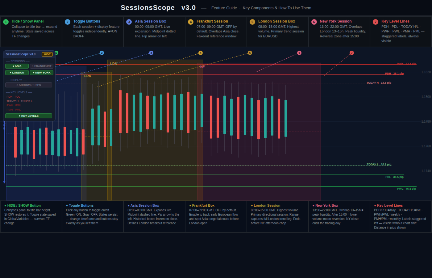 Everything in SessionsScope is controlled from a clean on-screen panel in the top-left corner of the chart.