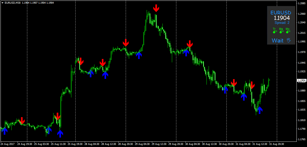 You may change the parameters of indicator and to setup them for yourself. If you trade for a long time, you may increase the values trix_period, ma_period, mom_period, global_period and the signals will appear rarely