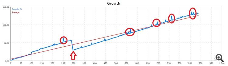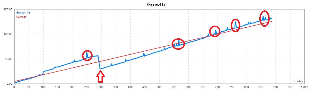 Su algoritmo se mueve alrededor de ganancia acumulativa para todas las operaciones abiertas de mismo tipo. Si la tendencia es opuesta de las operaciones iniciales, la mayoría de los comercios que pierden se borran en retroceso. Normalmente retroceso es del 25% al 50% en lo que de acuerdo con las mejores prácticas que va bien.