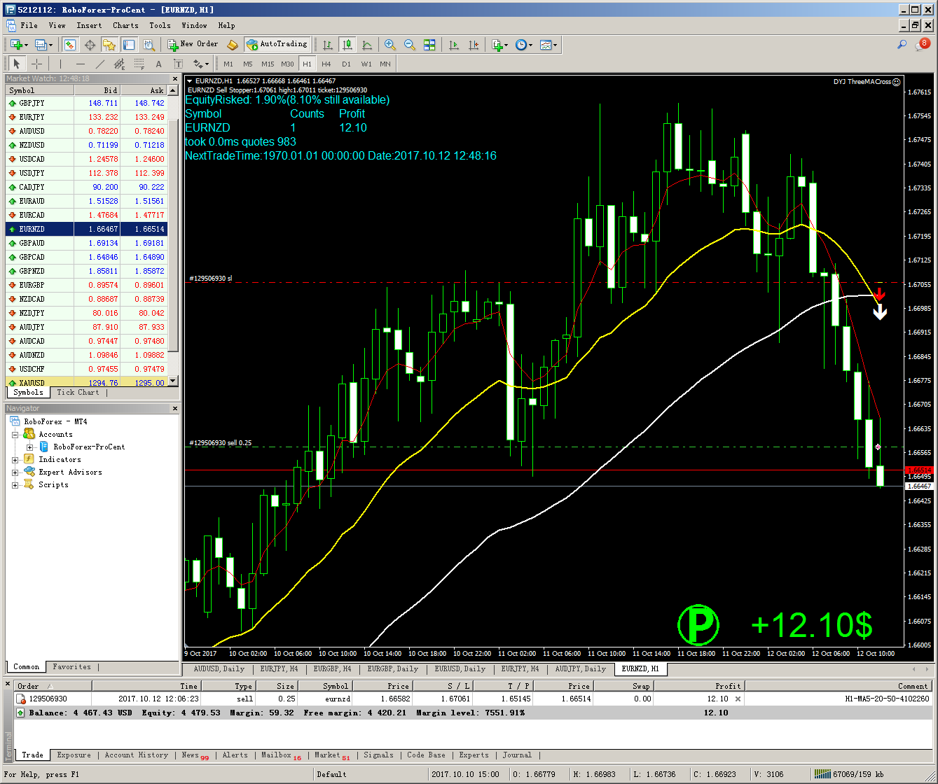 Soon released a new version,Updated version of DYJ ThreeMA V1.1 back to the results of a screenshot, the follow-up will give EURUSD all tested 2010010 to 20171020 performance, than the 1.0 version to improve profitability, increase the average overall trend control, and dynamic algorithm allocation 3MA and 2MA technology, So that the false signal is less and the effective signal increases.