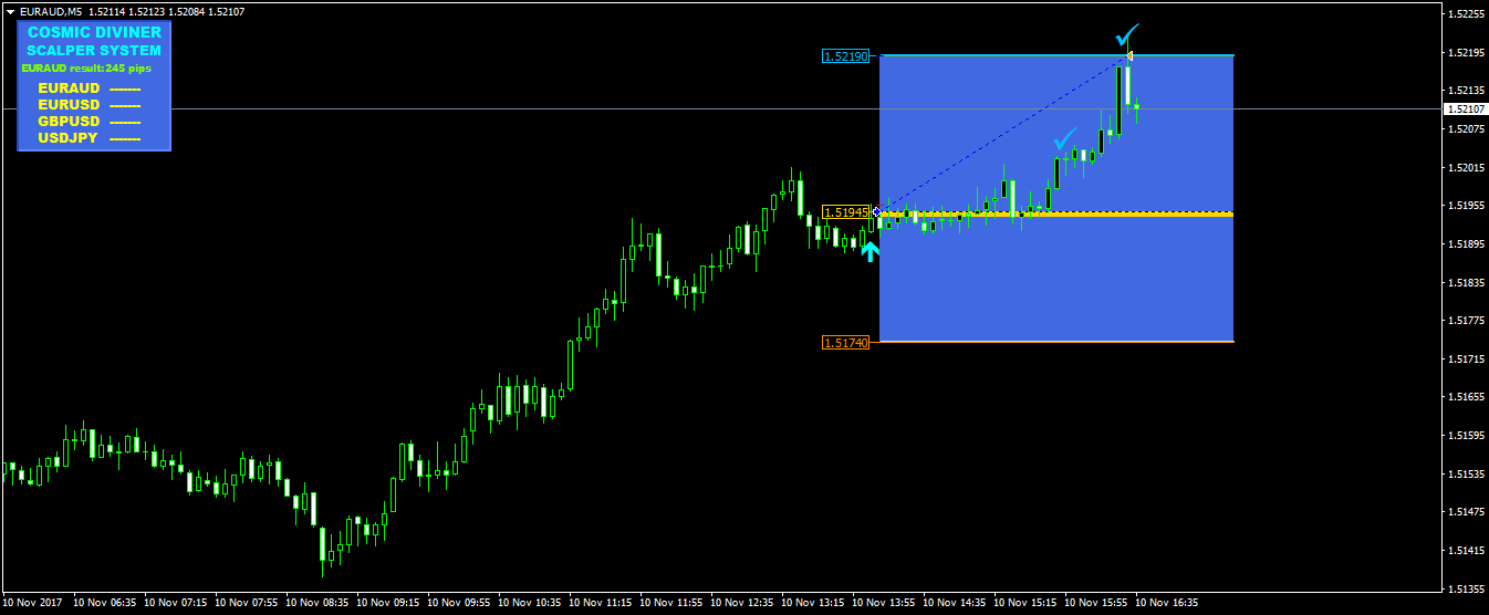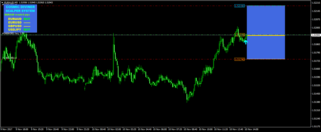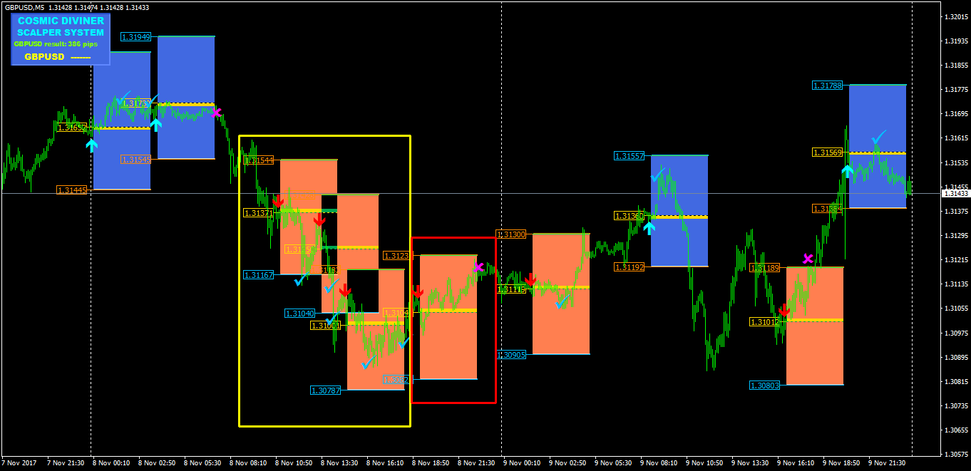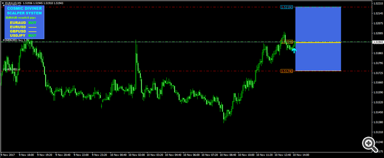 Here are the results of trading Сosmic Diviner Scalper System for 8.11.17 and 9.11.17 as you see the results are quite different, you chose the most unfortunate part of the schedule. I see that you do not display trading zones. I expect from you screenshots from a Terminal - Journal that could help me and figure out what you are doing wrong.