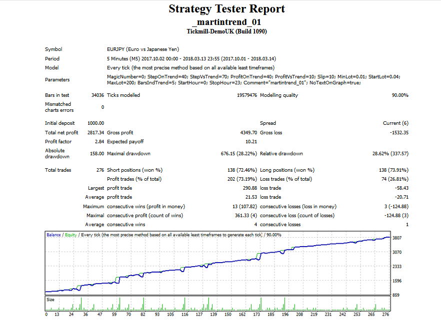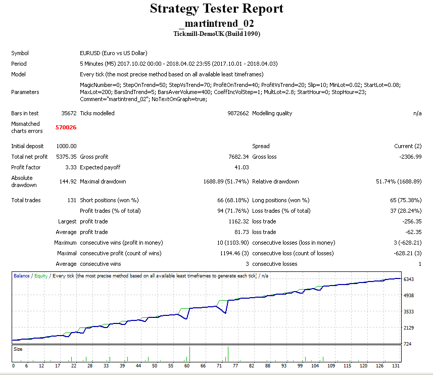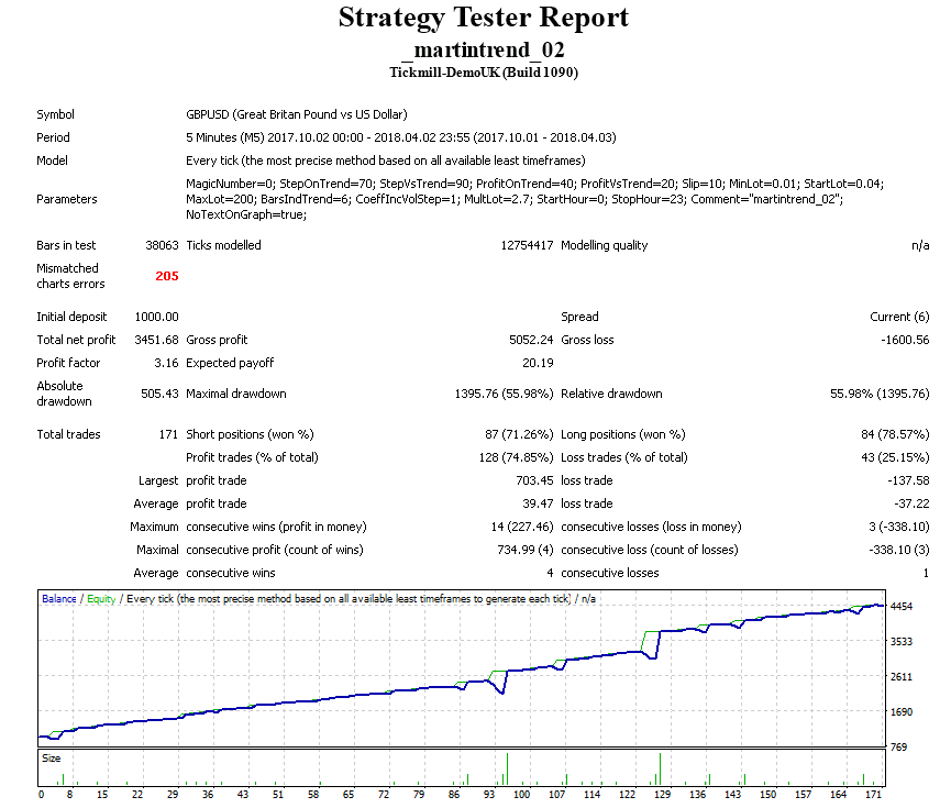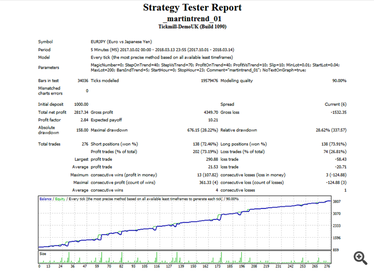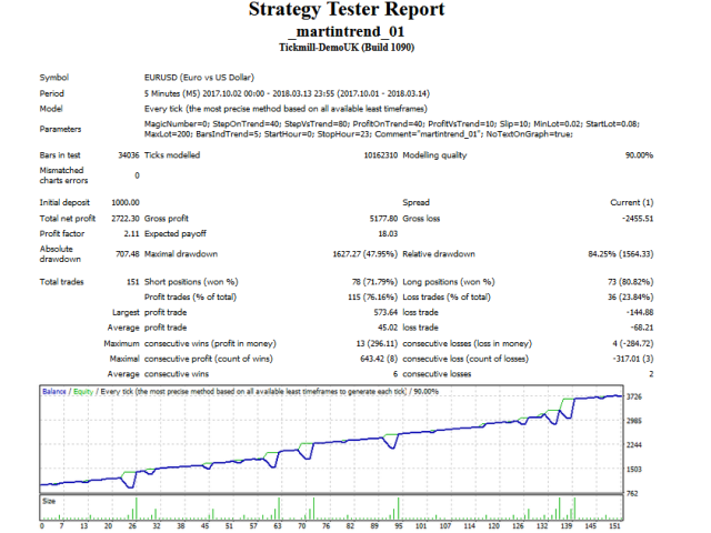 Уважаемые покупатели и арендаторы! Напоминаю, что данный советник использует рискованную стратегию мартингейла. В целях уменьшения риска при смене тренда можно запустить советник на том же инструменте и таймфрейме с другим магическим числом. Тогда он будет открывать позиции по тренду, что уменьшит просадку. Чтобы первый советник закрыл ветку с минимальным профитом и больше не торговал, необходимо установить параметры StartHour=25 и StopHour=25.