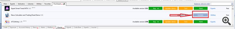 If there is NO update label then try to remove "EA_SATO_MT5" and install the new one.