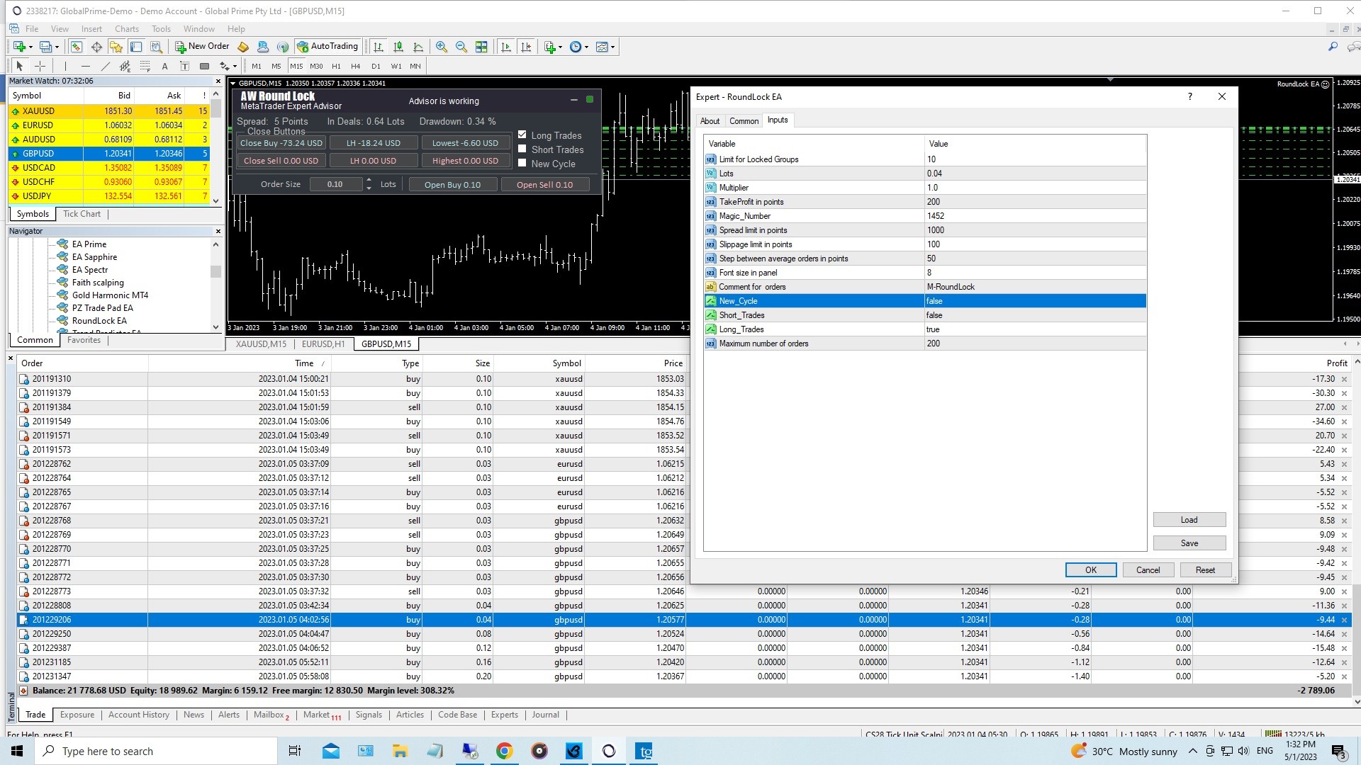 Round Lock is an Expert Advisor that trades two-way trading with a pair of multidirectional orders.