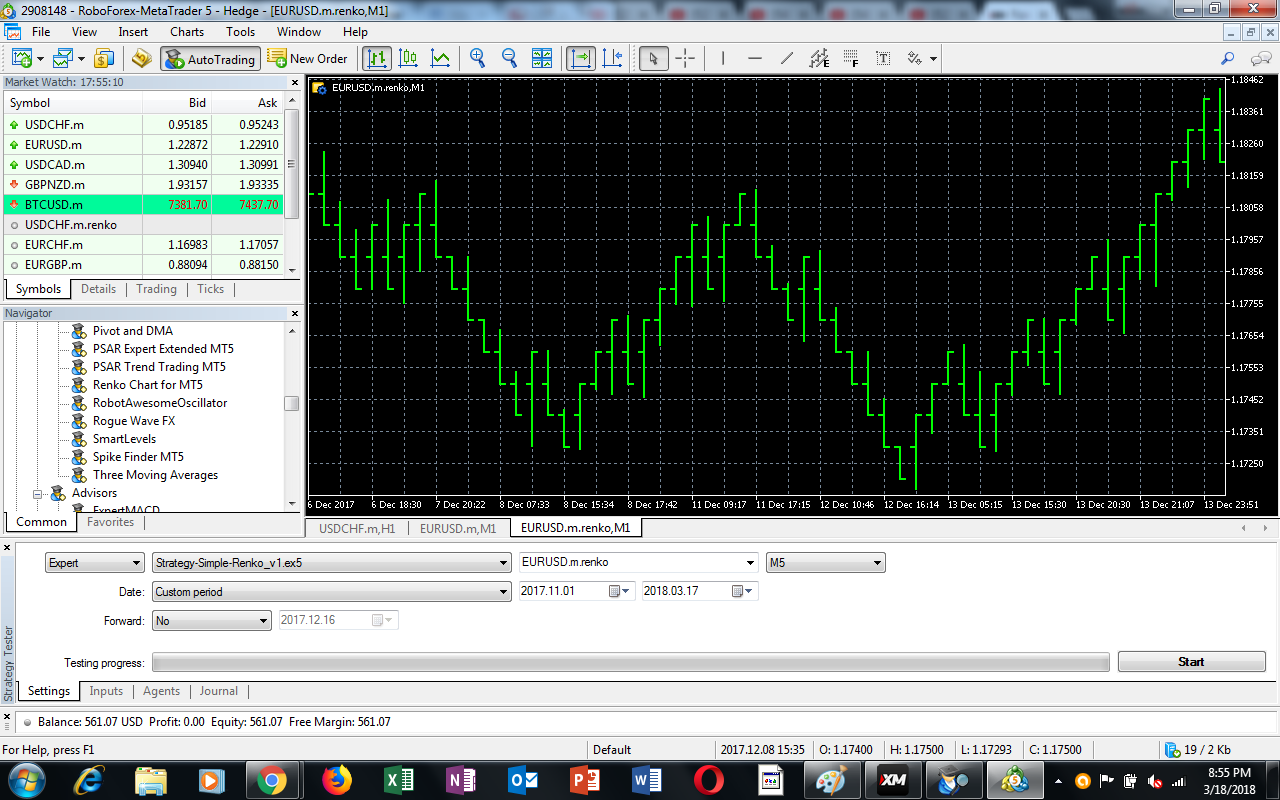 I am using roboforex broker... I attached the renko charts in EURUSD M1 chart and asked to download data from November 2017 onwards.. This is the chart I get.. The chart does not go before 6 December.. What am I doing wrong?