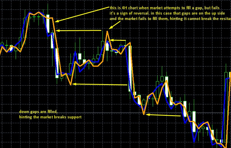 when market is closed, the orange line will not be moving, but you will see past gaps on the 30min, 1H, 4H and Daily chart and which gaps are