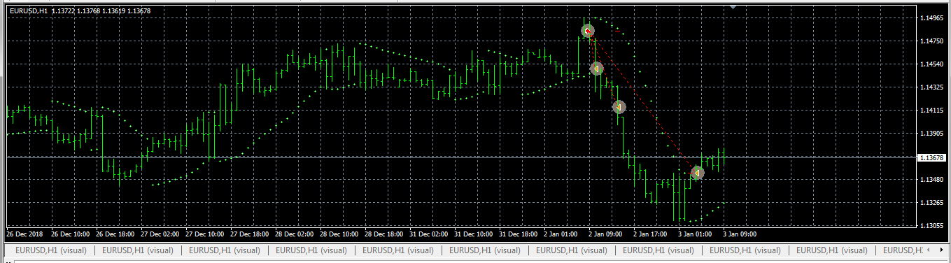 4.Stop-loss = 3 pips below the previos Heinken Ashi candle