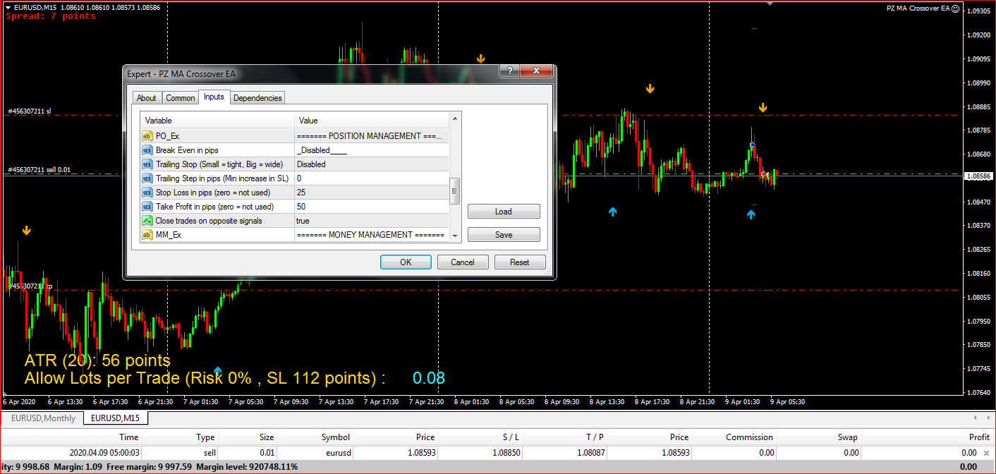 Hi Arturo Lopez, great EA however, I think the EA isn't as good as you think. It opens positions immediately, it the Moving Averages cross regardless of whether the particular candle that generated the signal is open or closed. It would be nice if the EA opens an order after the signal is confirmed when the candle that generated the signalcloses . That would ensure that the position isn't opened when there is no reason to.