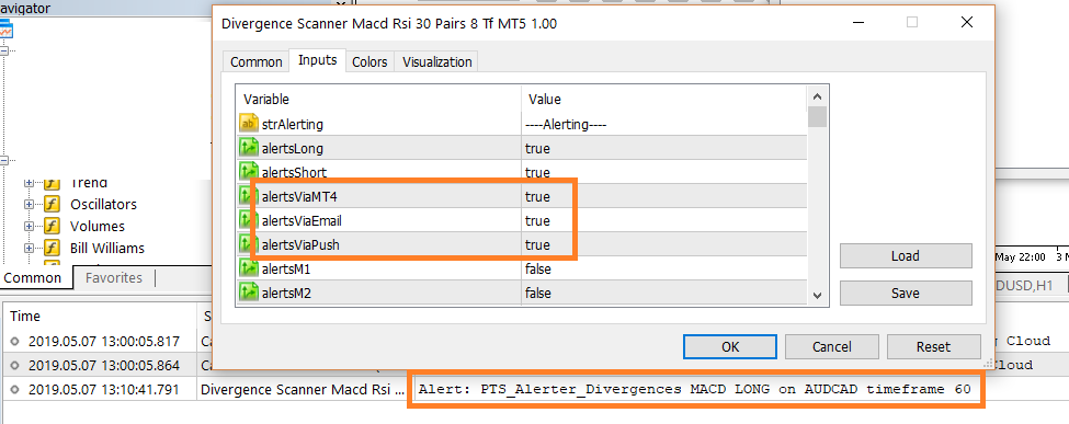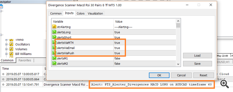 I saw there's an alert on AUDCAD H1 timeframe in the "Experts". But why there's no alert from the MT5 even though i have set TRUE for the alerts?
